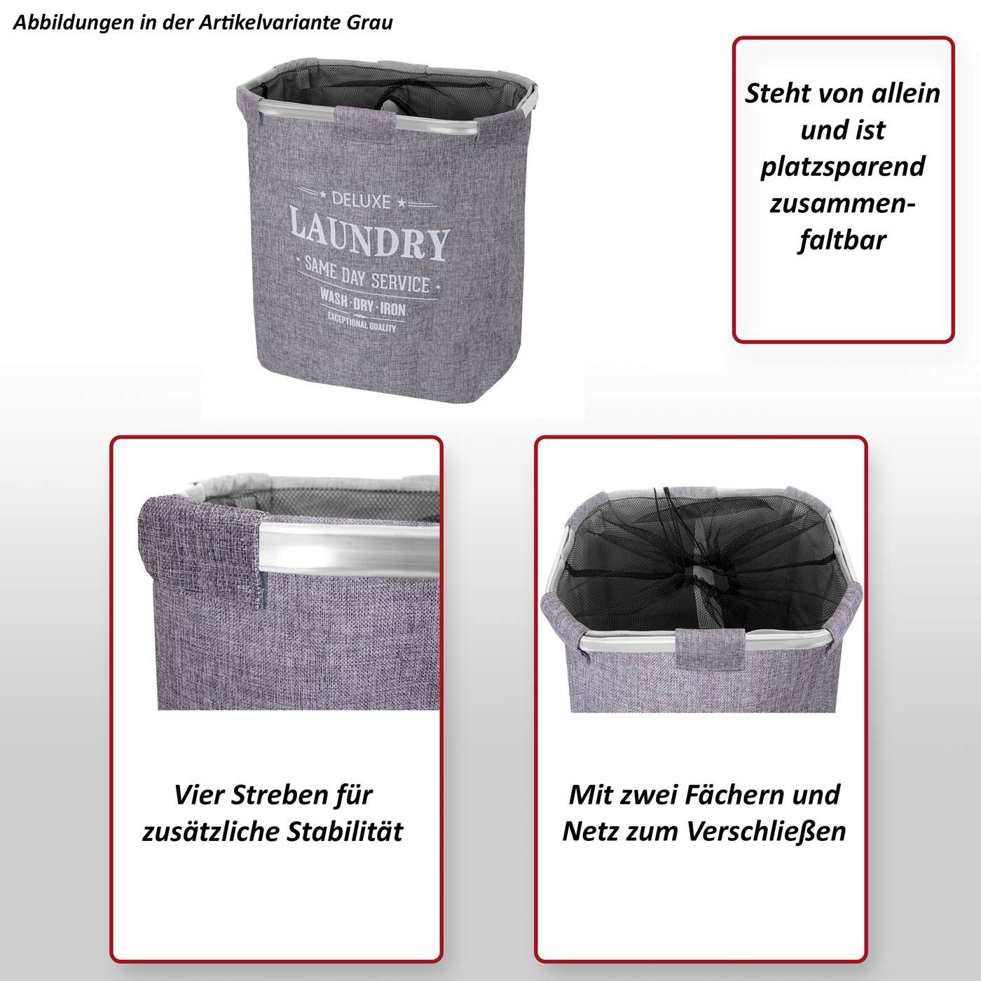 Mendler Wäschesammler HWC-C34, Laundry Wäschebehälter mit Netz, 56x49x30cm 82l