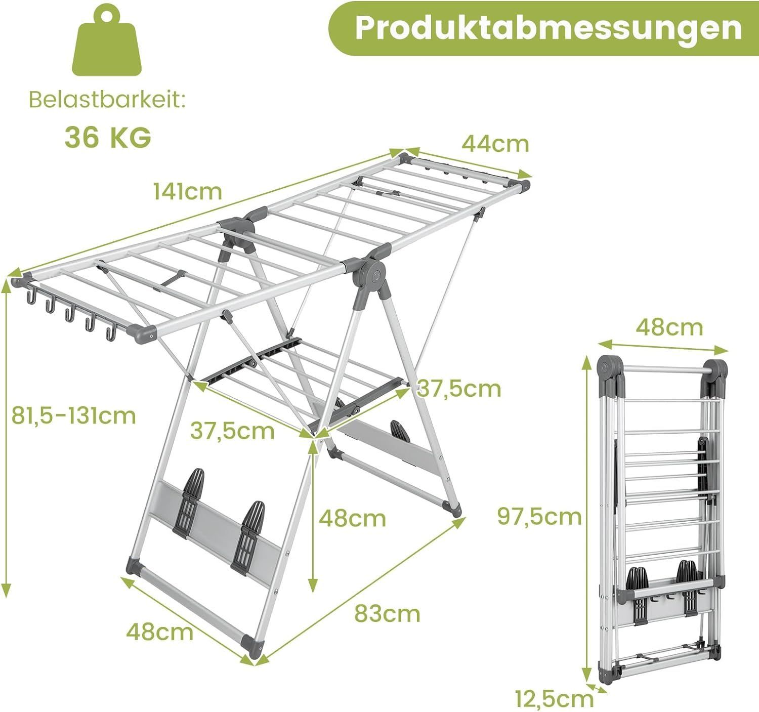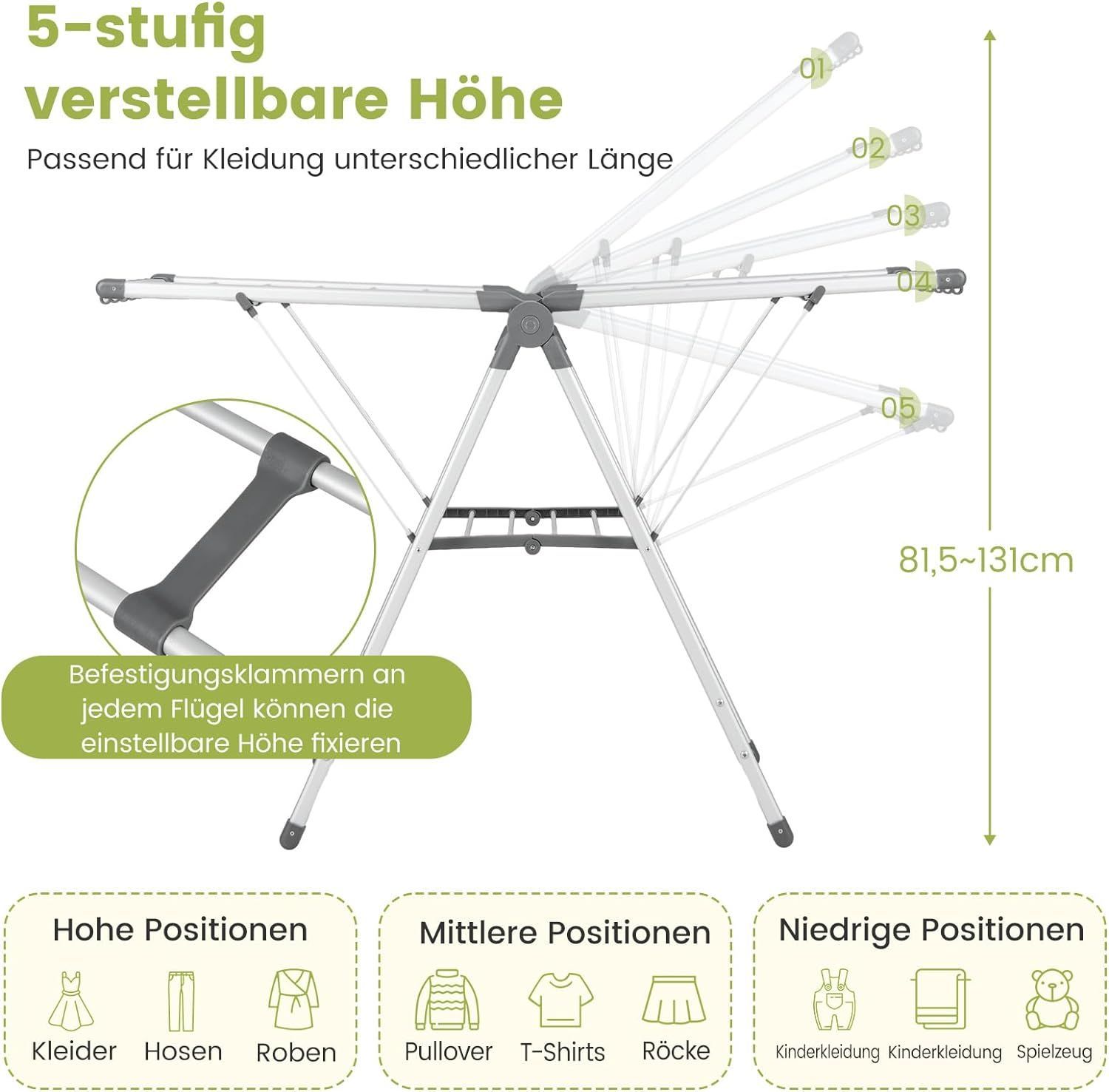 Wäscheständer klappbar, Wäschetrockner ausziehbar, Standtrockner höhenverstellbar