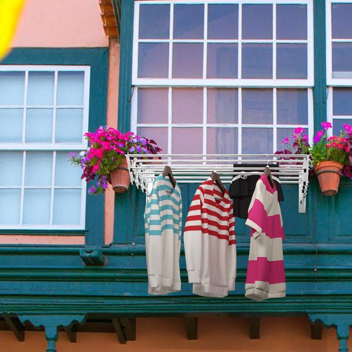 Wäscheständer zur Wandmontage, Wandtrockner ausziehbar aus Edelstahl mit 8 Stangen