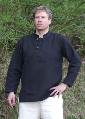 • Schweres Mittelalter-Hemd mit Holzknöpfen handgewebt schwarz Gr. XXXL