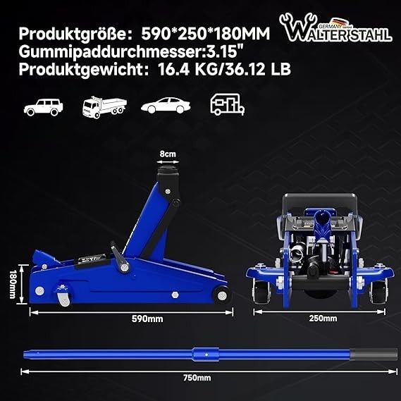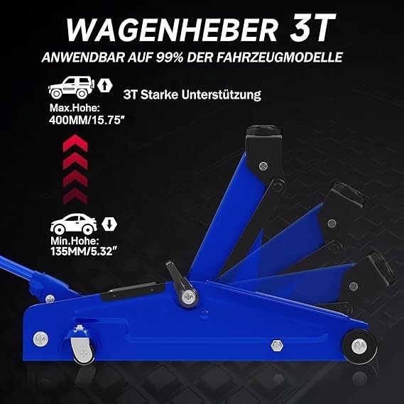 Wagenheber Hydraulisch 3T, Hubhöhe 135-400mm & 75-500mm