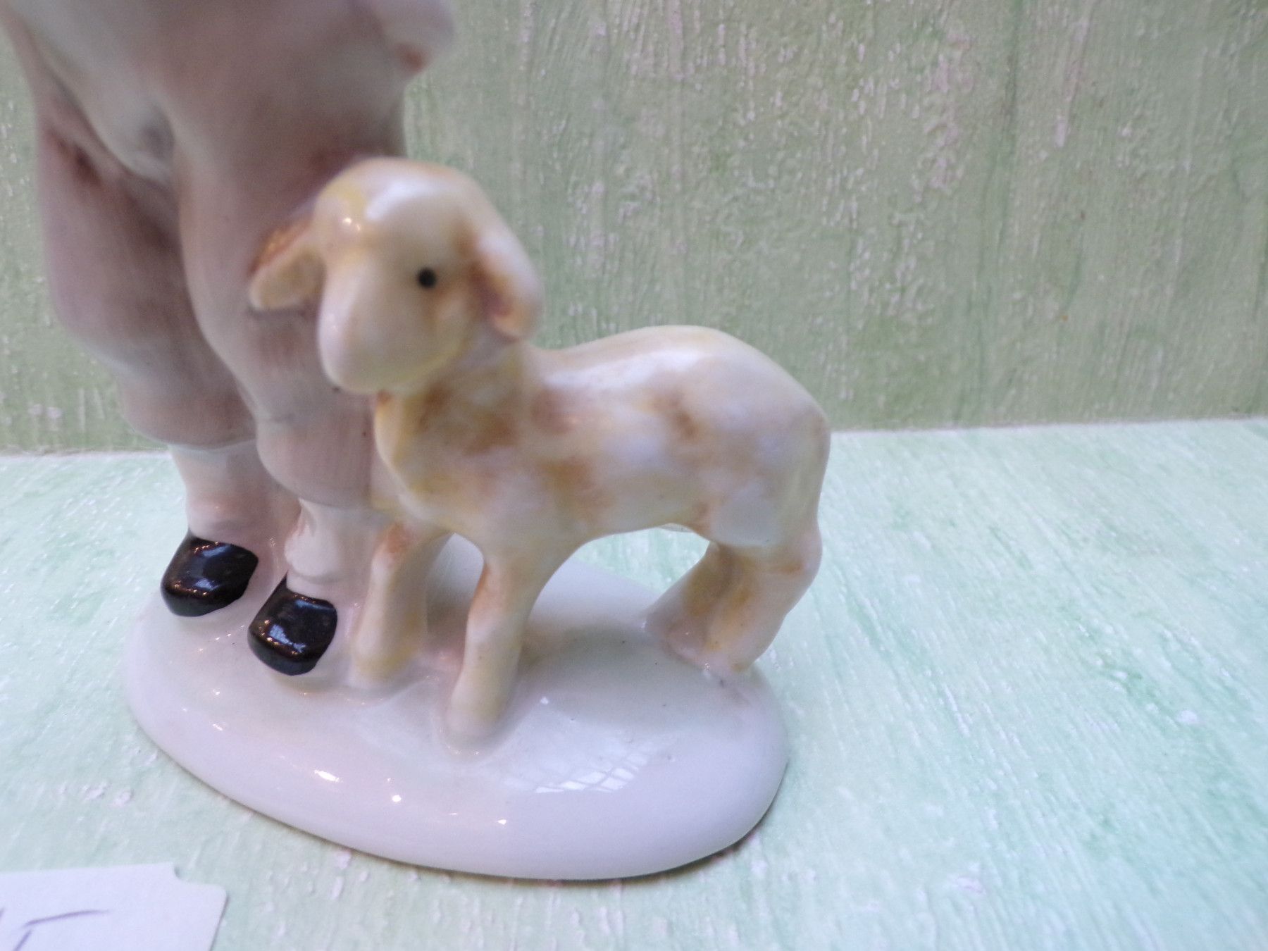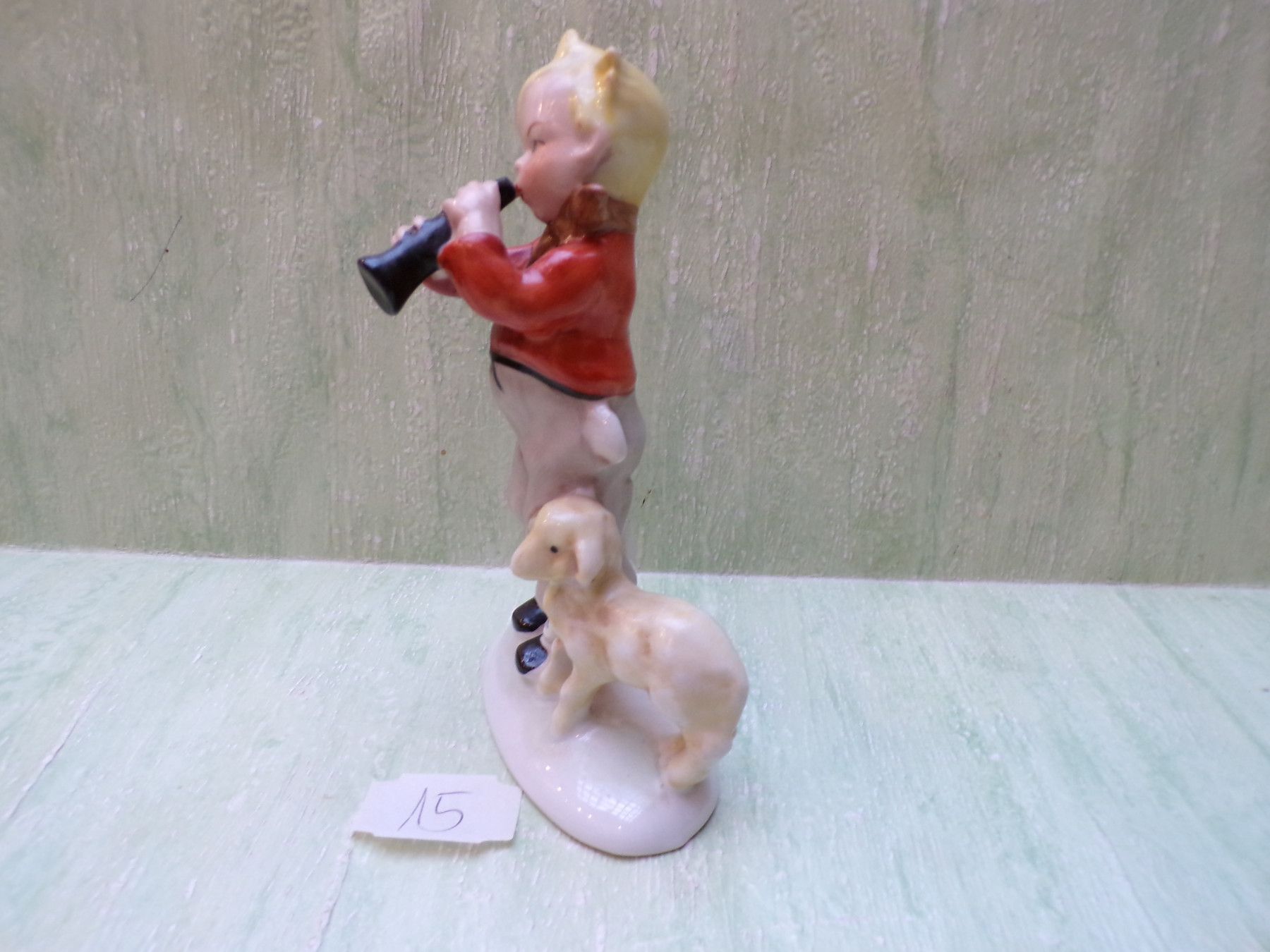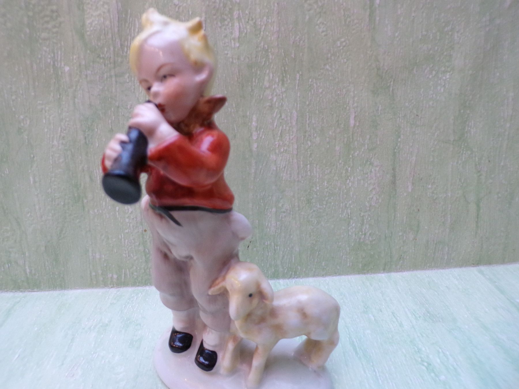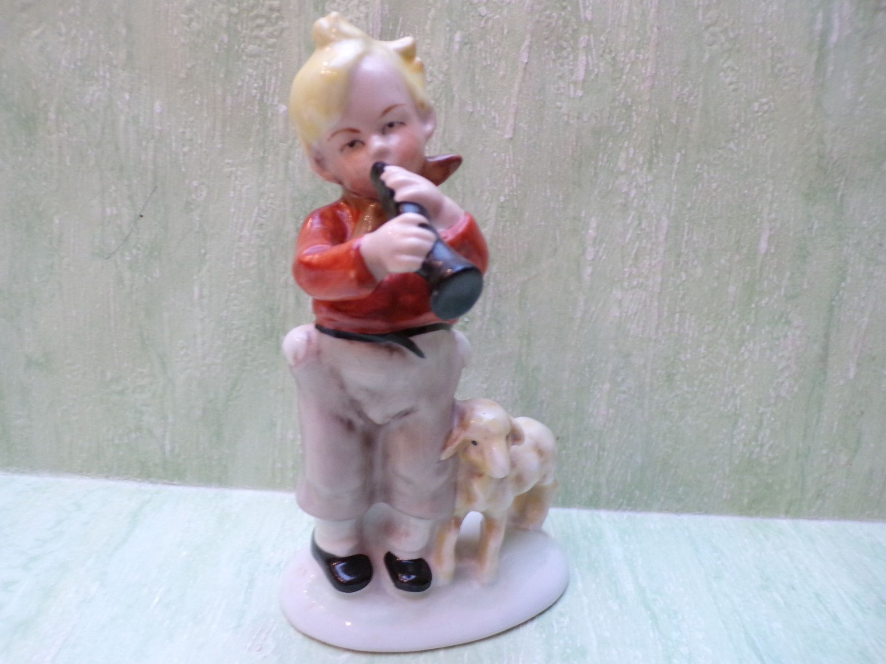 Wagner & Apel 1877 GDR Hirtenbub Flötenspieler Schaf ca 14cm Figur Porzellan
