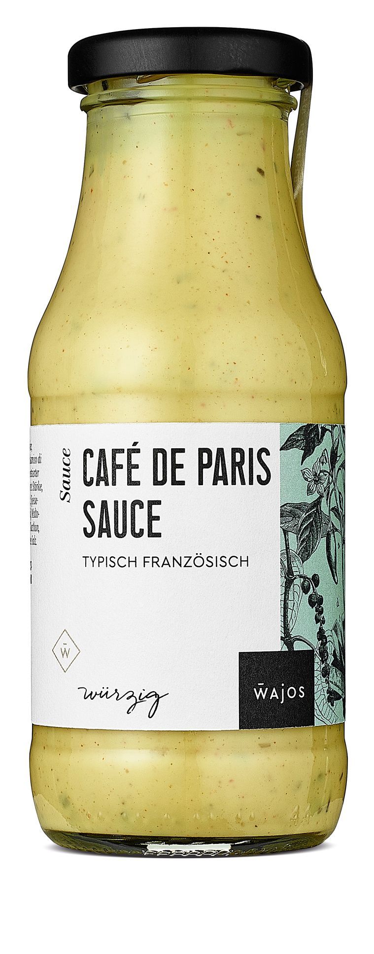Wajos Café de Paris Sauce 245ml - französische Grillsoße Café de Paris Sauce – Eine besondere Delikatesse Unsere exquisite Café de Paris Sauce ist eine wahre Spezialität! Die harmonische Mischung aus erlesenen Kräutern wie Estragon, Petersilie, Thymian, Oregano und Knoblau