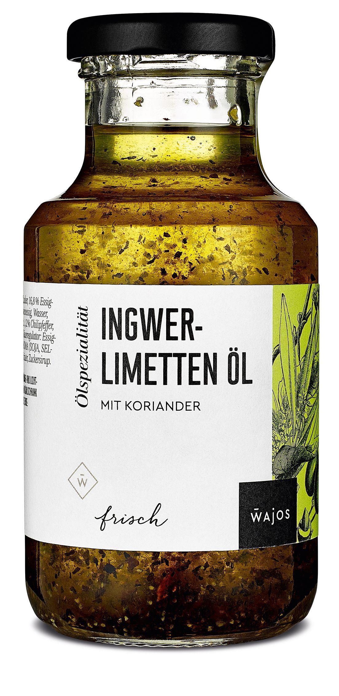 Wajos Ingwer Limetten-Öl mit Koriander 250ml Wajos Ingwer-Limetten Öl – Frisch, cremig & exotisch Dieses Öl kann mehr! Wunderbar frisch und fein-würzig, mit einer leichten Fruchtnote – ein echter Alleskönner. Die Kombination aus sanfter Limette, aromatischem Ingwer und ausgewählten Gewür