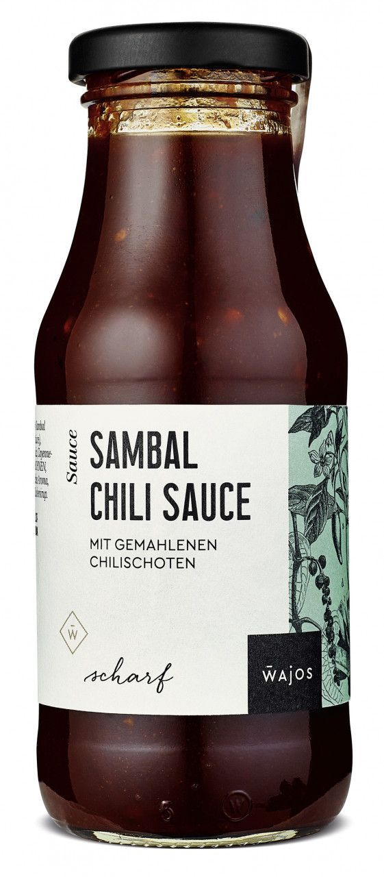 Wajos Sambal Chili Sauce 245ml Wajos Sambal Chili Sauce 245ml Scharf, schärfer, Sambal Chili Sauce: Diese Spezialität ist nichts fürschwache Geschmacksnerven. Mit gemahlenen Chilischoten, Cayenne-Pfeffer,roten Zwiebeln und Ingwer verleiht sie Ihren Lieblingsgerichten schon mit einemKlecks die besond