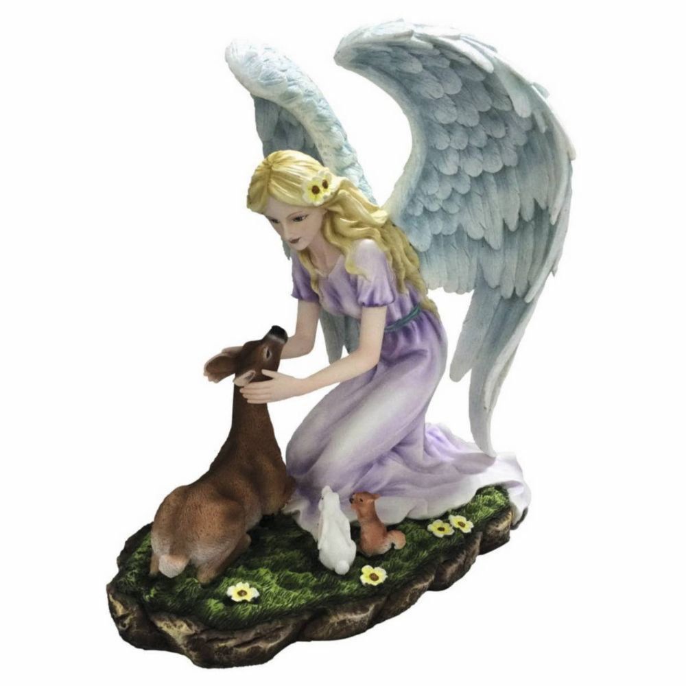 Waldengel Cornania kniet vor einem Reh (Gr. 29x23x29cm)