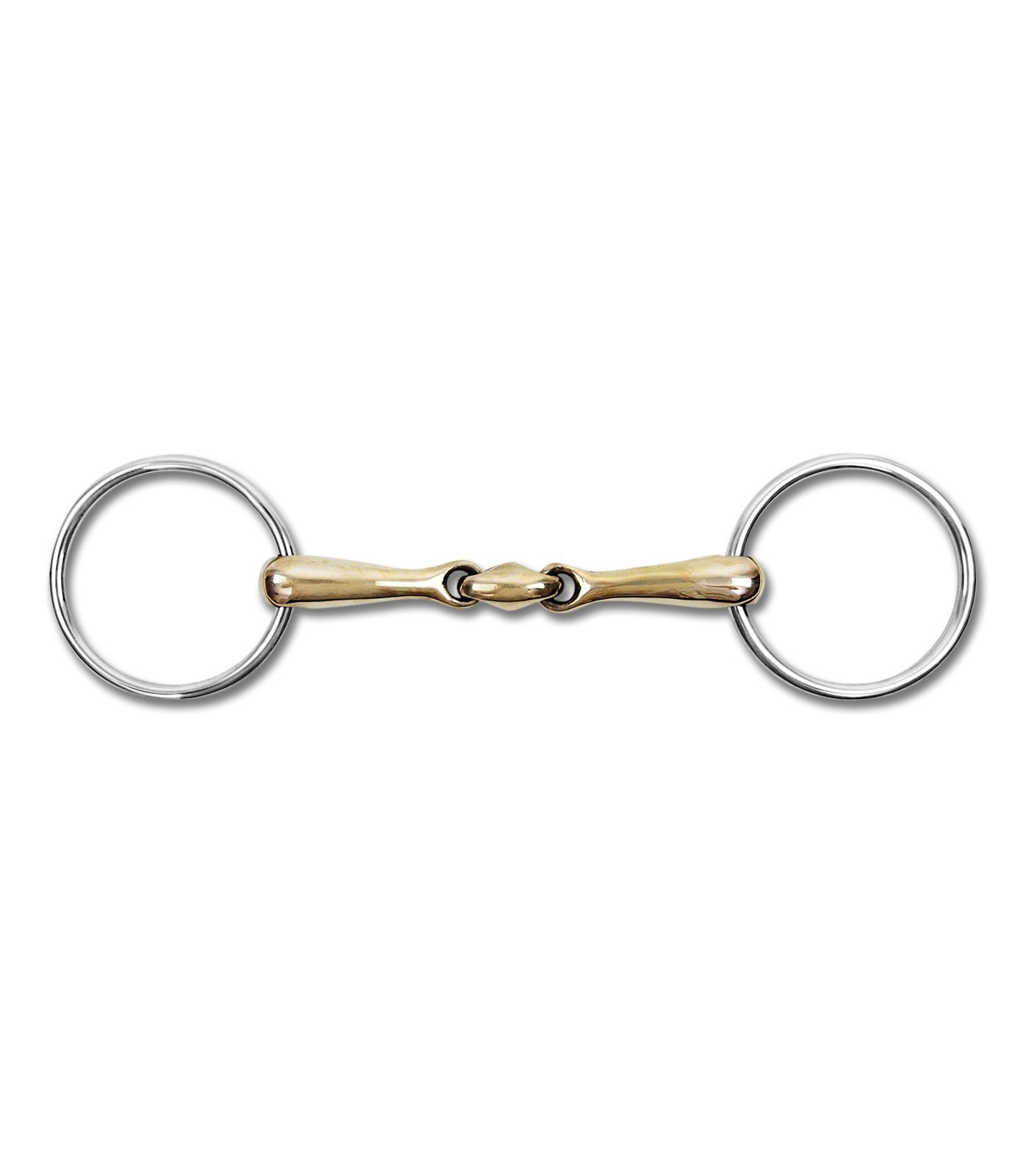 olivförmiges Zwischenstück, Edelstahl-Ringe Die neuen Waldhausen Kupfergebisse mit einem 62%igem Kupferanteil fördern die Kautätigkeit und den Speichelfluss. Die Kupferlegierung ist nickelfrei, die Ringe sind aus Edelstahl. Stärke: 18 mm, Ringe: Durchschitt 7 cm