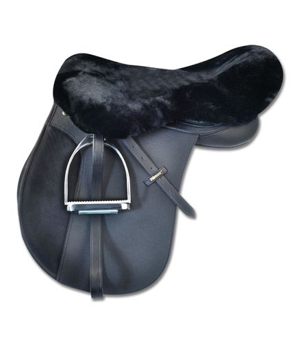 Sattelsitzbezug aus Lammfell für optimalen Sitzkomfort. Praktische Befestigung mit elastischen Bändern und einer regulierbaren Klettstrippe. Passend für englische Sättel in den Größen 42cm 16 - 46cm 18 Waldhausen Lammfellprodukte Alle Lammfellprodukte bestehen aus hochwertiger Merinoschafwolle und z