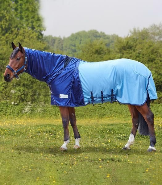 WALDHAUSEN PROTECT Ekzemer-Fliegendecke WA 63189 Kombination aus Ekzemer- und Fliegendecke. Halsteil und Schulterbereich aus elastischem, atmungsaktivem Funktions-Faserstoff. Fliegendecke aus feinmaschigem Gewebe mit Bauch- und Schweiflatz zum Schutz vor lästigen Insekten. Doppelter Frontverschluss,