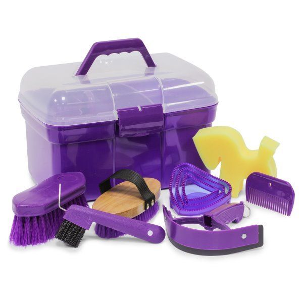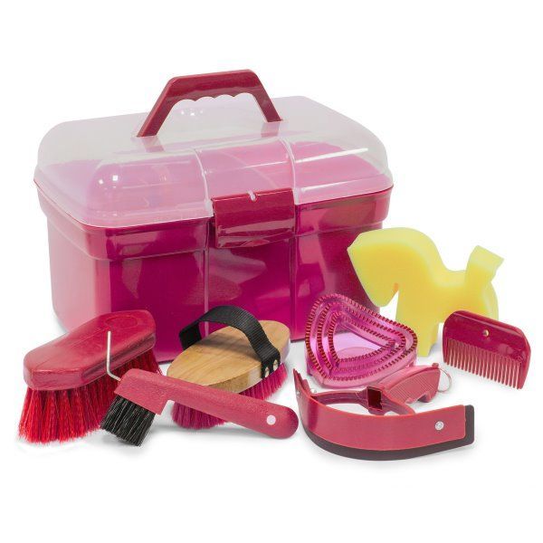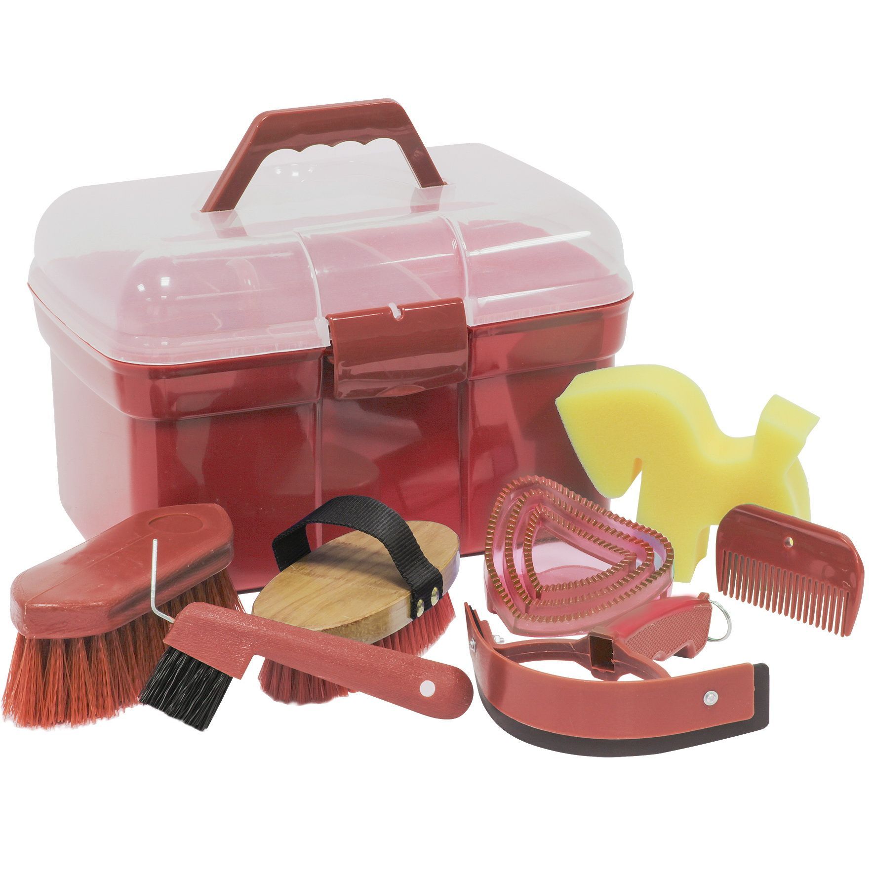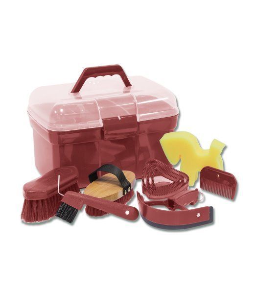 WALDHAUSEN Putzköfferchen WA 1557 Umfangreiches Pflege-Set in pfiffiger Box. Mit herausnehmbarem Kleinteilefach und Tragegriff. Inklusive Kardätsche, Mähnenkamm, Hufkratzer, Gummistriegel, Pinsel mit Dose, Schweif- und Mähnenbürste und Nadelstriegel. Maße: 20 x 20 x 31 cm