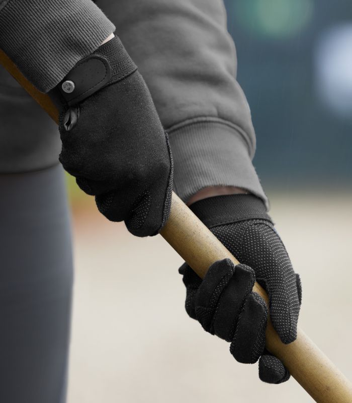 - Sehr leichter Reithandschuh - Atmungsaktiv - Klettverschluss - Innenseite mit Silikon-Print - Zügelverstärkung - Waschbar Material: 100% Baumwolle