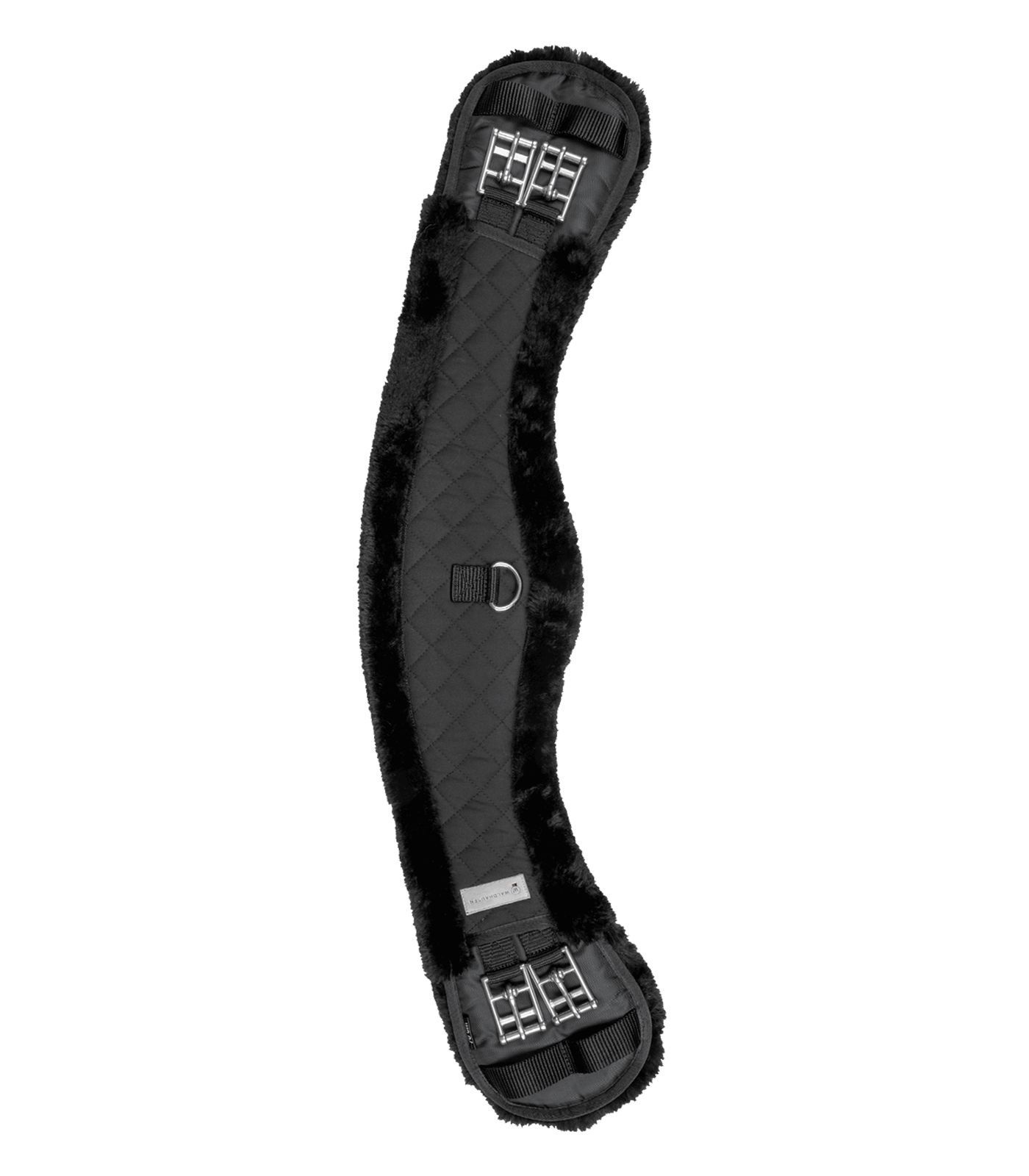 Kurzgurt, mit weichem synthetischen Fell unterlegt. Durch seine Form ist der Kurzgurt besonders für bauchige Pferde geeignet und beugt ein nach vorne rutschen des Sattels vor. Mit D-Ring und Rollschnallen aus Edelstahl. Ohne Elastik.