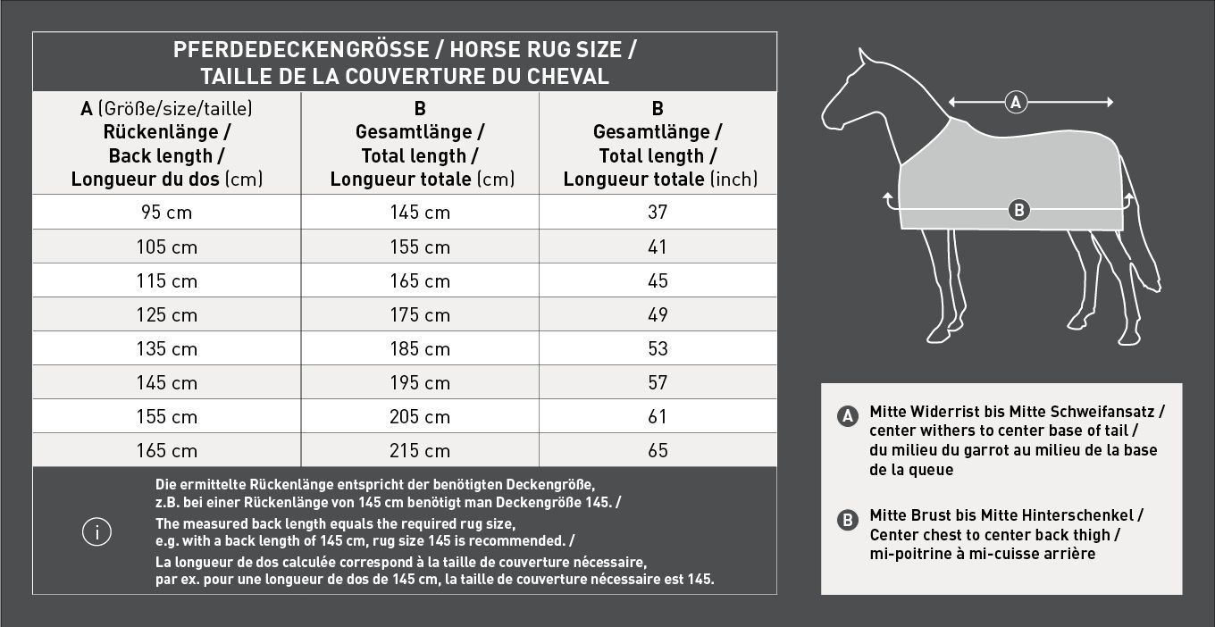 125 cm, 135 cm, 145 cm, 155 cm und 165 cm