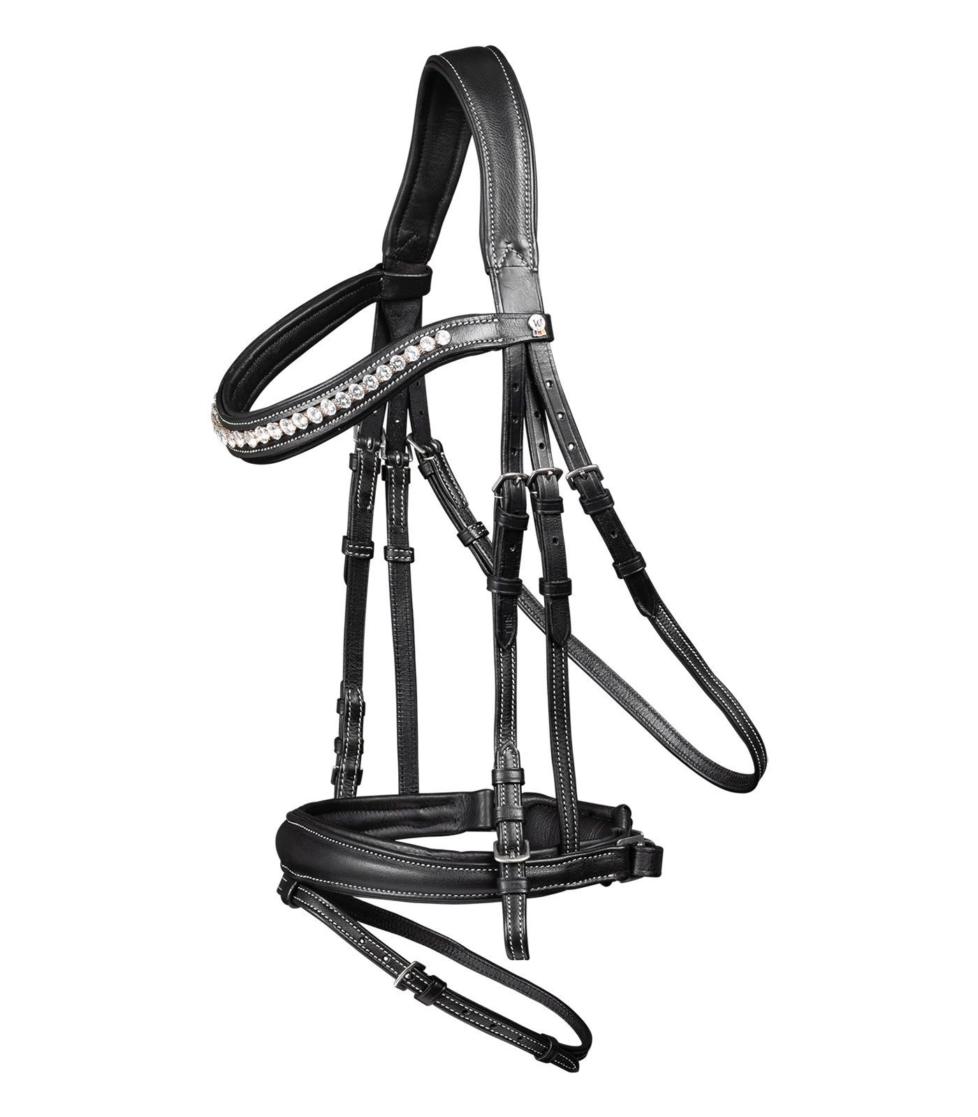 WALDHAUSEN X-Line Trensenzaum SUPERSOFT JOY WA 95778 - Schwedisch kombiniertes Reithalfter - Extrem weiches Leder - Anatomisch geformtes Genickstück - Geschwungenes Stirnband mit Strasskette - Nasenriemen, Stirnband und Genickstück weich unterlegt - Edelstahlbeschläge - 19 mm Gurtzügel Hochwertig un