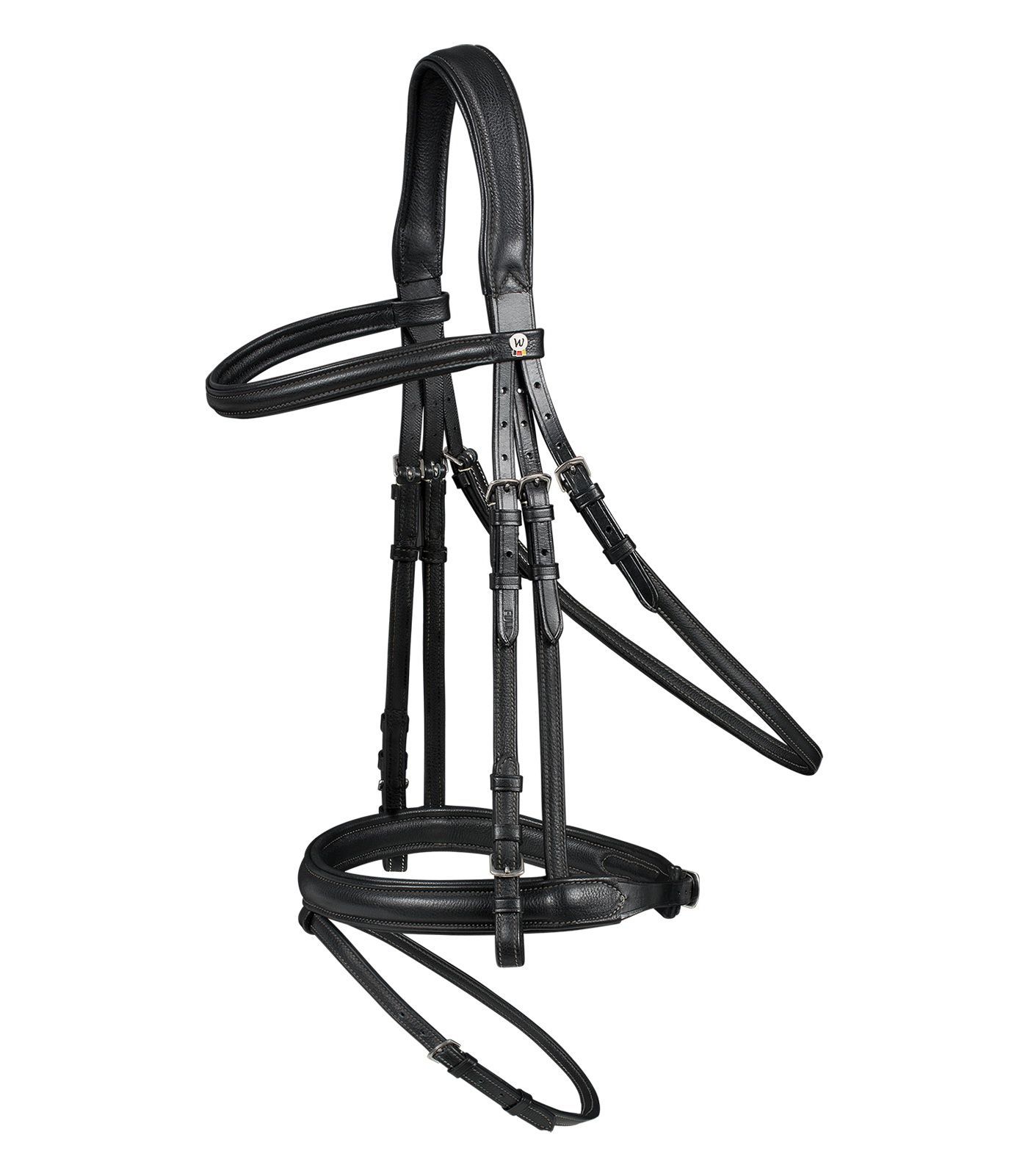 WALDHAUSEN X-LineTrensenzaum SUPERSOFT WA 95715 - englisch kombiniertes Reithalfter - extrem weiches Leder - anatomisch geformtes Genickstück - gerades Stirnband - Nasenrienem, Stirnband und Genickstück weich unterlegt - Edelstahlbeschläge - 19 mm Gurtzügel Hochwertig und edel - die X-Line Kollektio