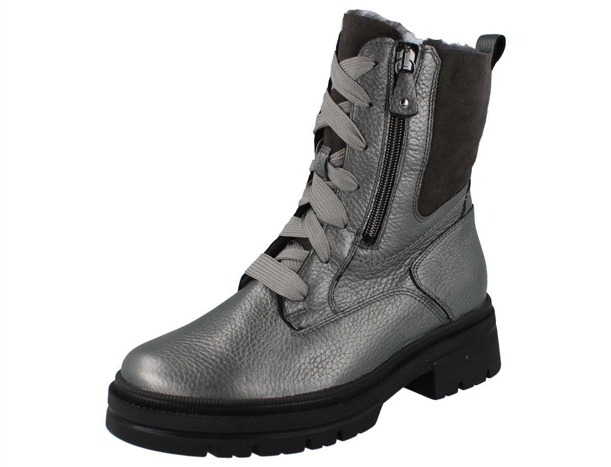 Waldläufer Waldläufer H Amara Damen Schnür Stiefelette Stiefel grau silber Glanzleder