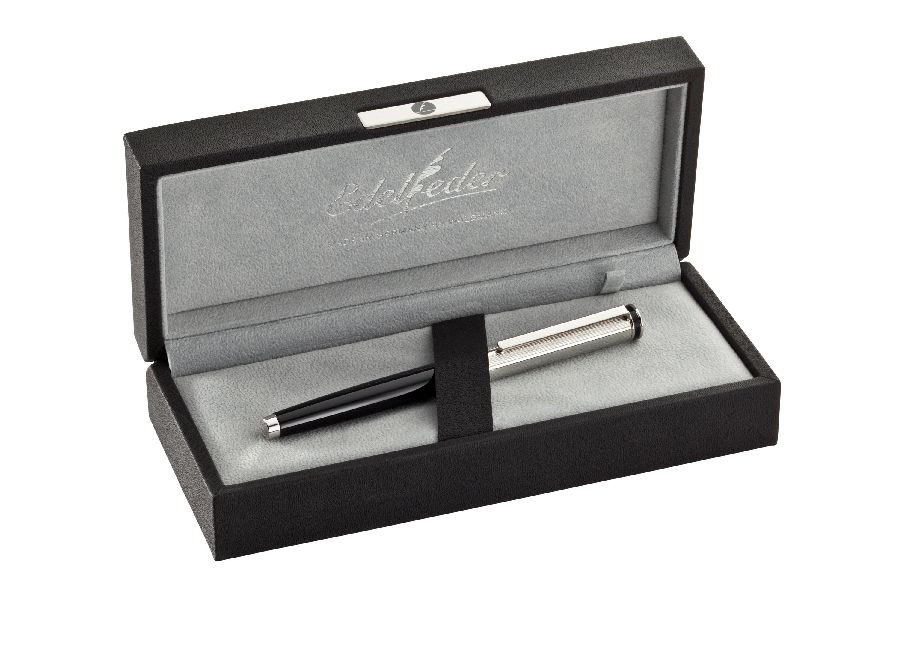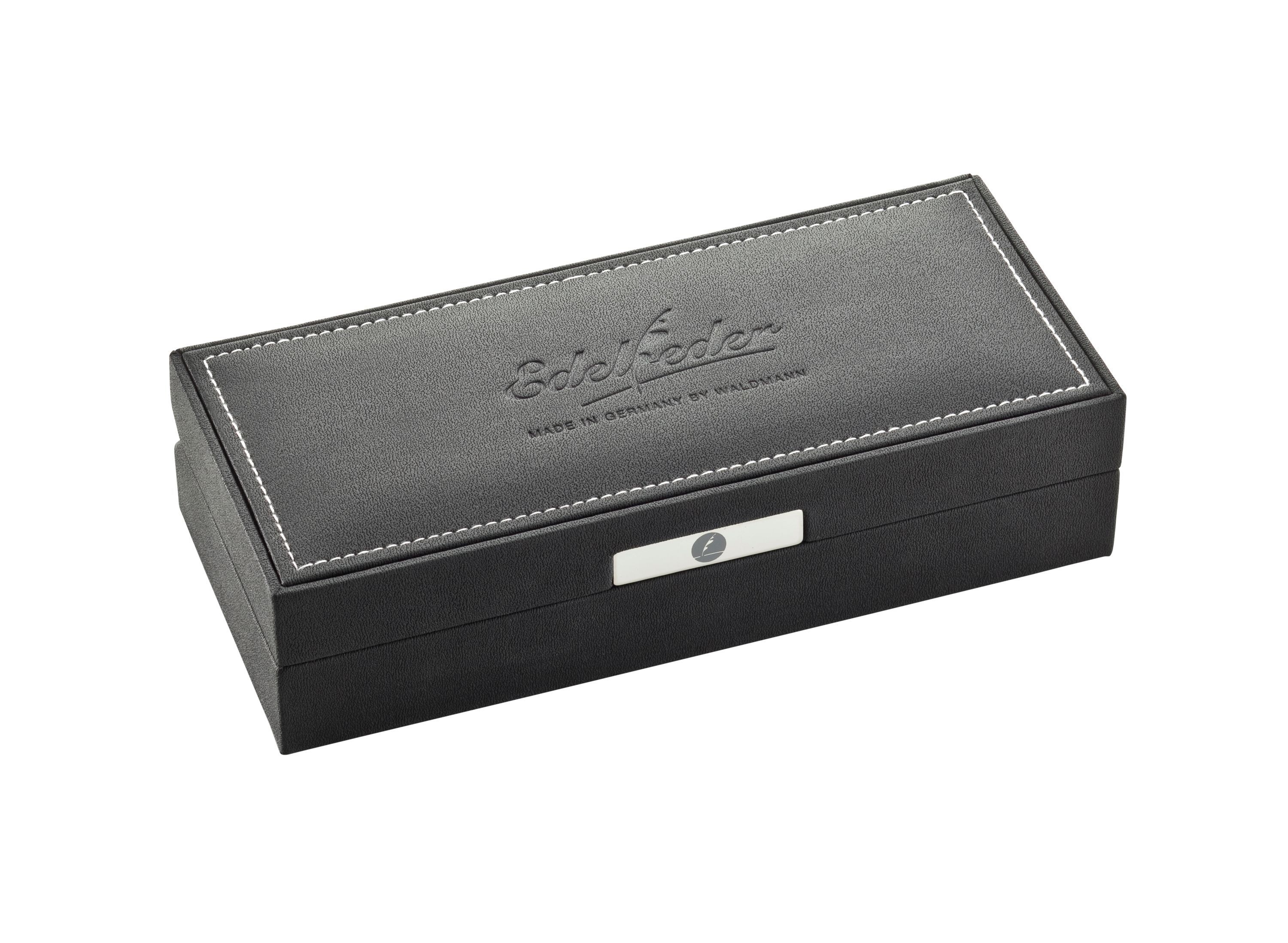 Waldmann Edelfeder Etui, aus schwarzem Kunstleder, mit Ziernaht auf Deckel