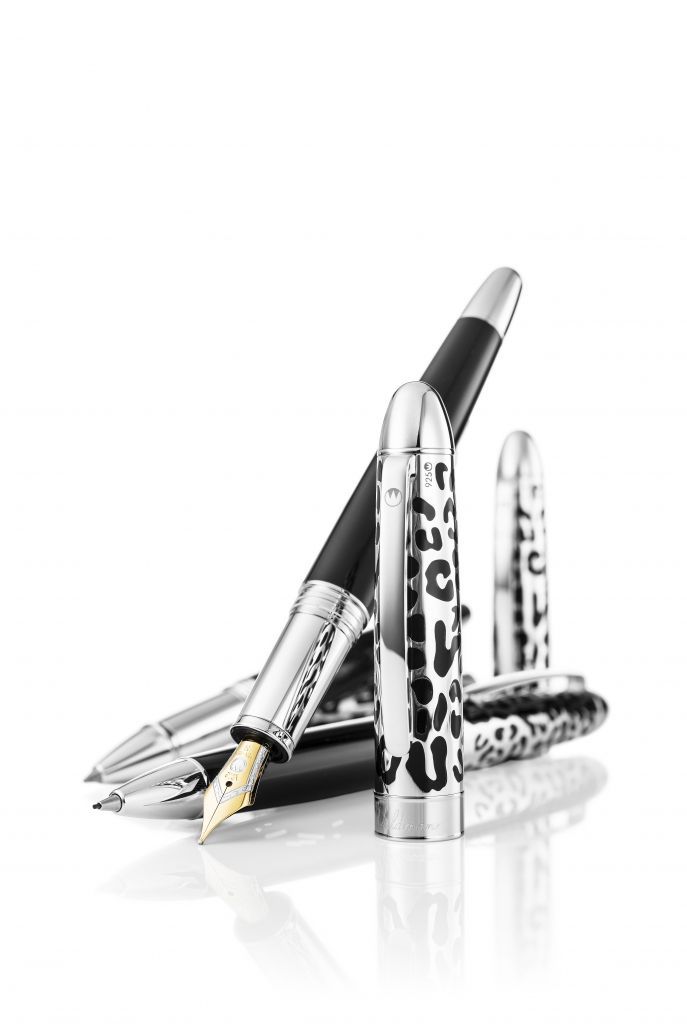 Waldmann Leopard Füllfederhalter, Sterling Silber Leopardenmuster graviert