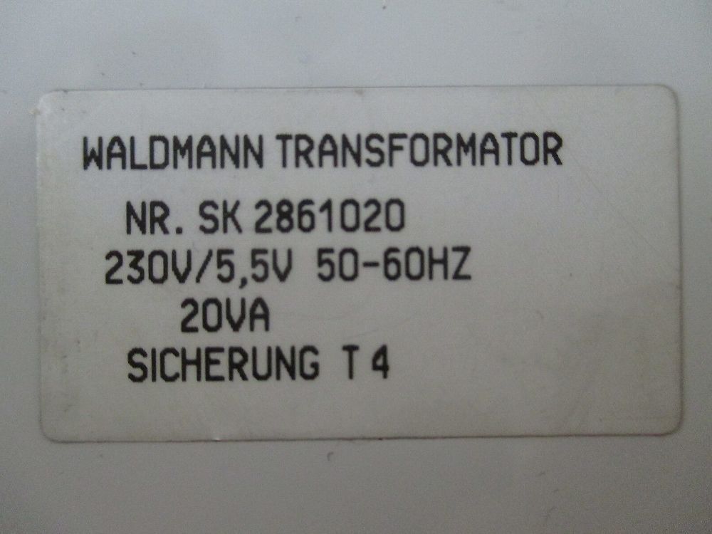 Waldmann Transformator SK 2861020 Trafo pri. 230 V sek. 5,5 V 20 VA T9/917