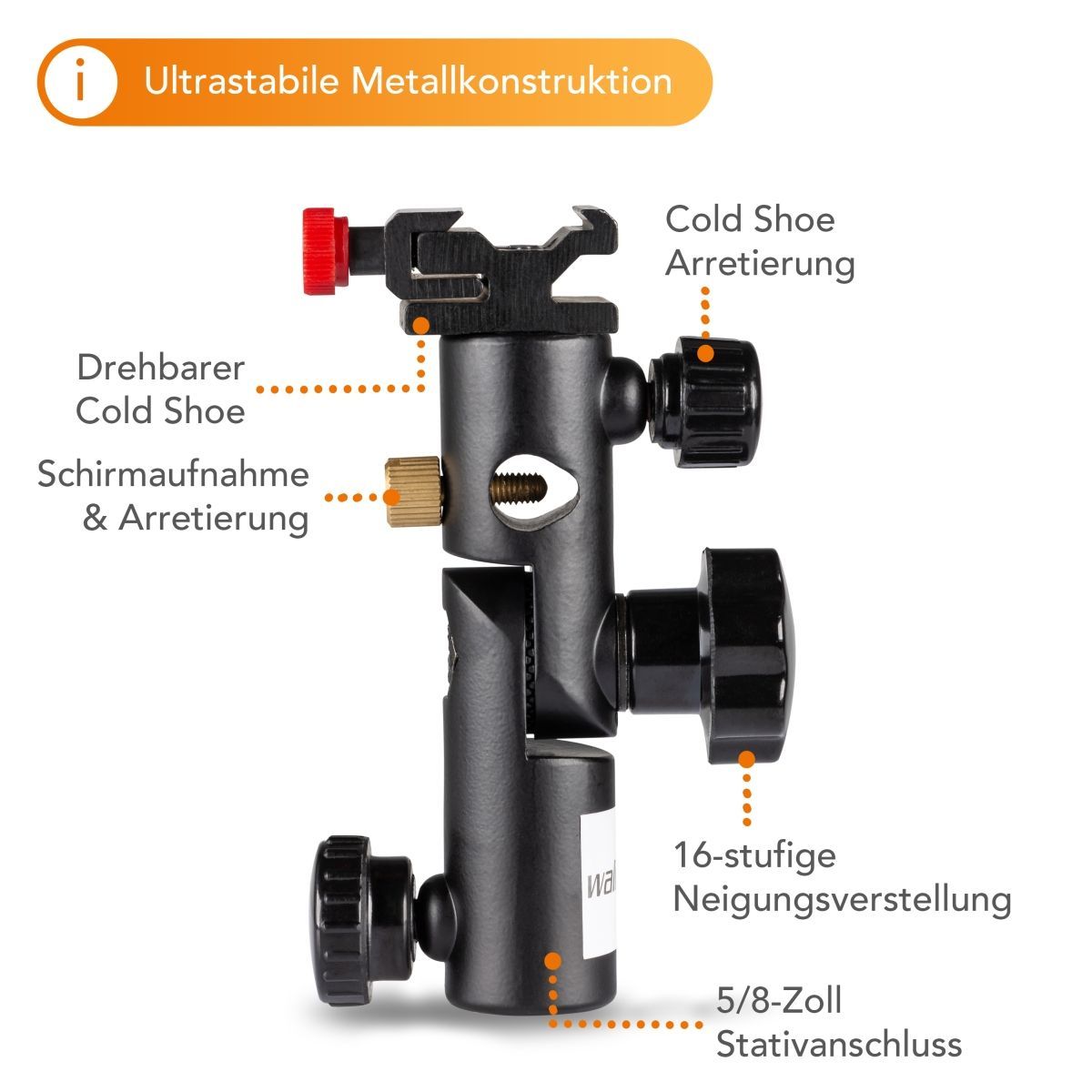 walimex Walimex Blitzhalter Schirmhalter 120x67x35mm Metall neigbar -90°- + 90° Blitzschuh