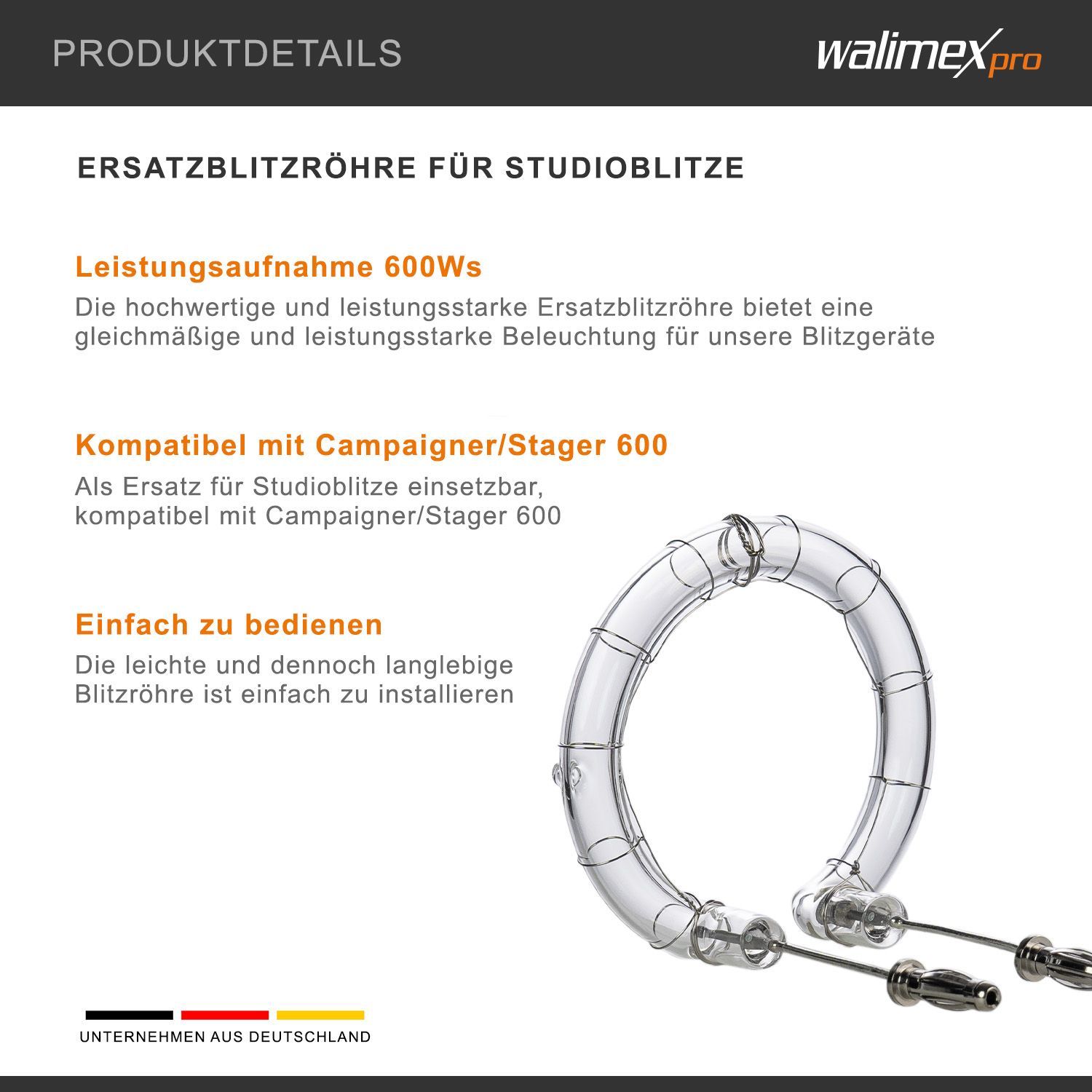 walimex Walimex Ersatzblitzröhre Campaigner/Stager 600 600W 5400-5800K Ersatz Blitz Foto