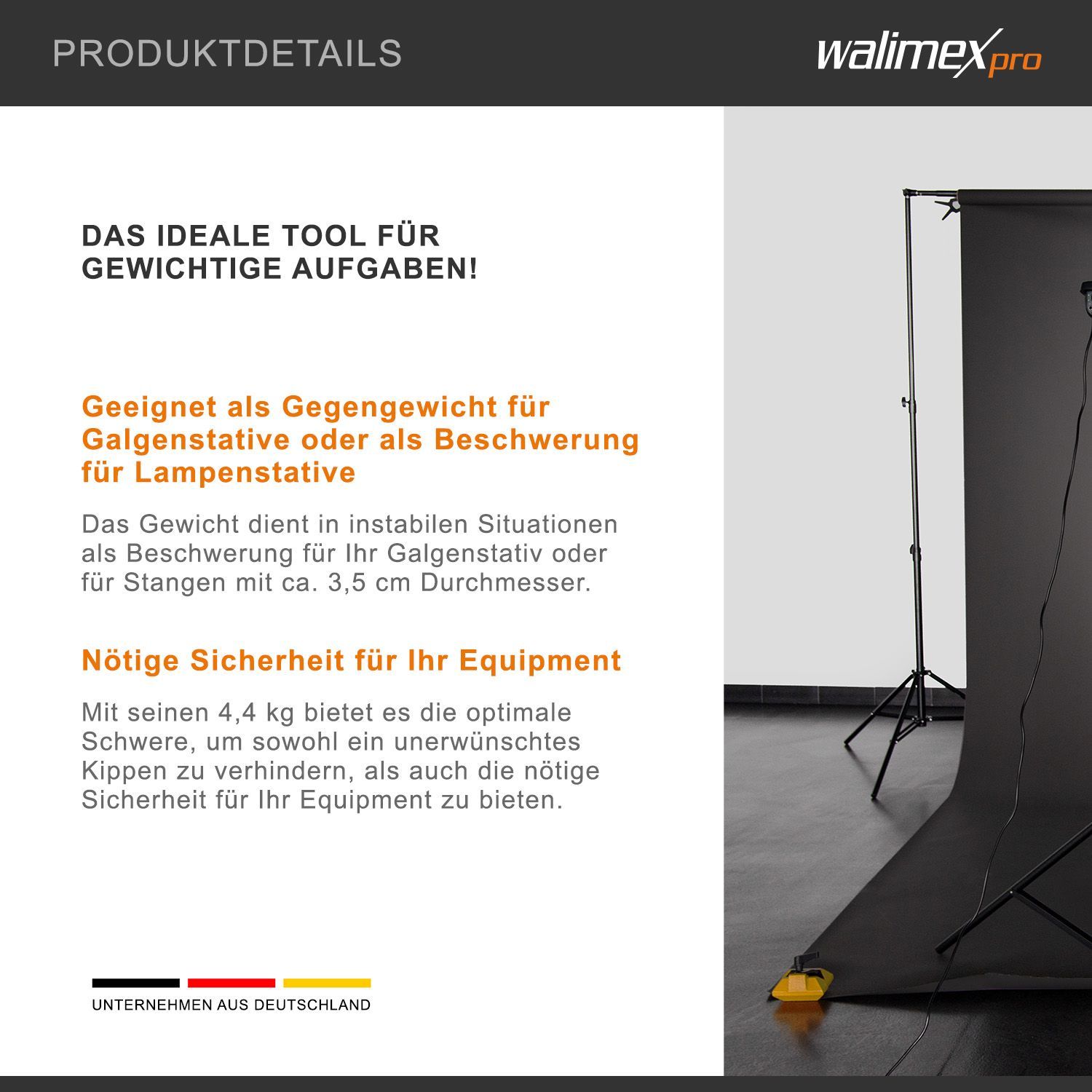 walimex Walimex Gewicht Stangen- & Galgenstativ 4,4kg Beschwerung Stativ Lampenständer