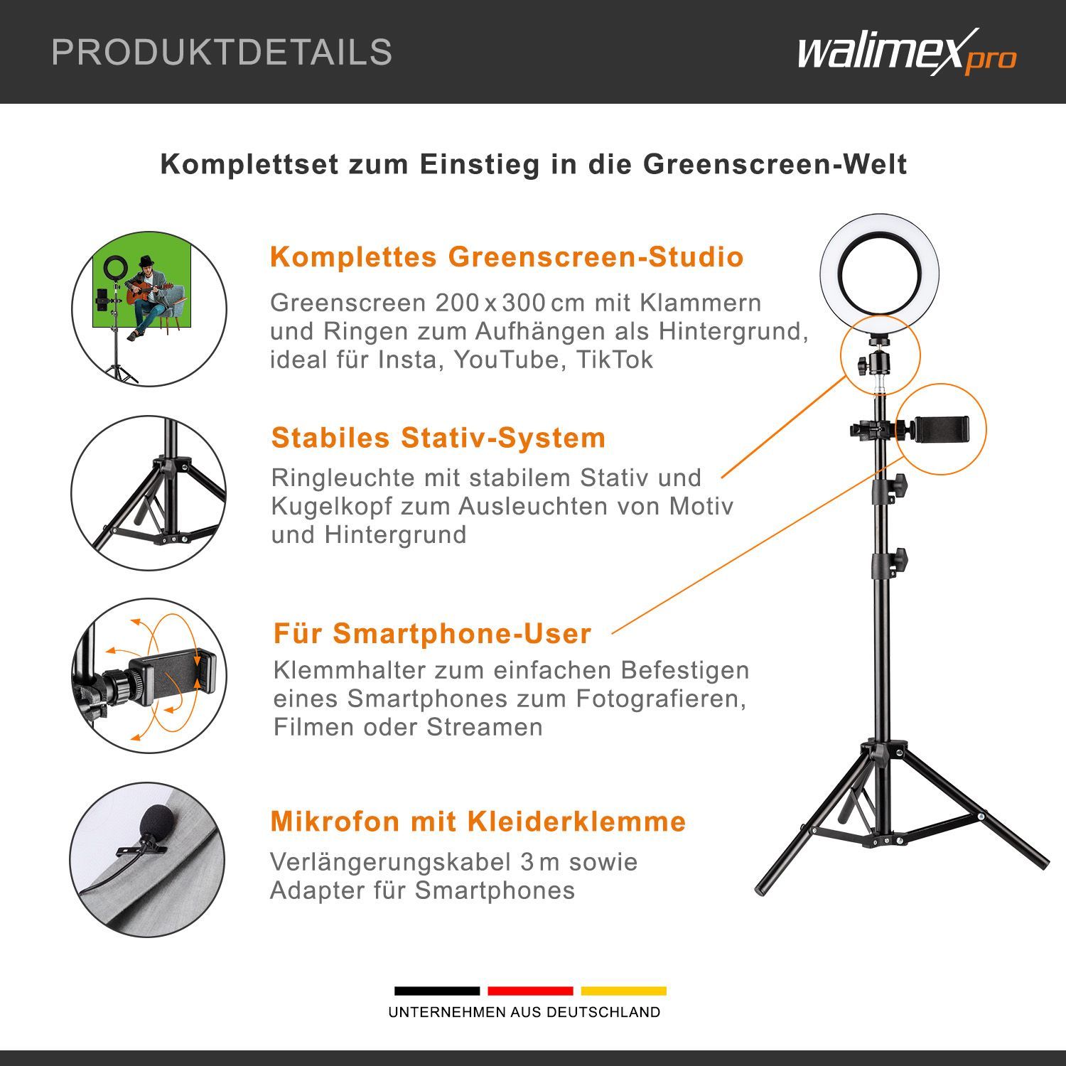 walimex Walimex Greenscreen Komplettset Studio inkl. Stativ Ringleuchte Videostudio