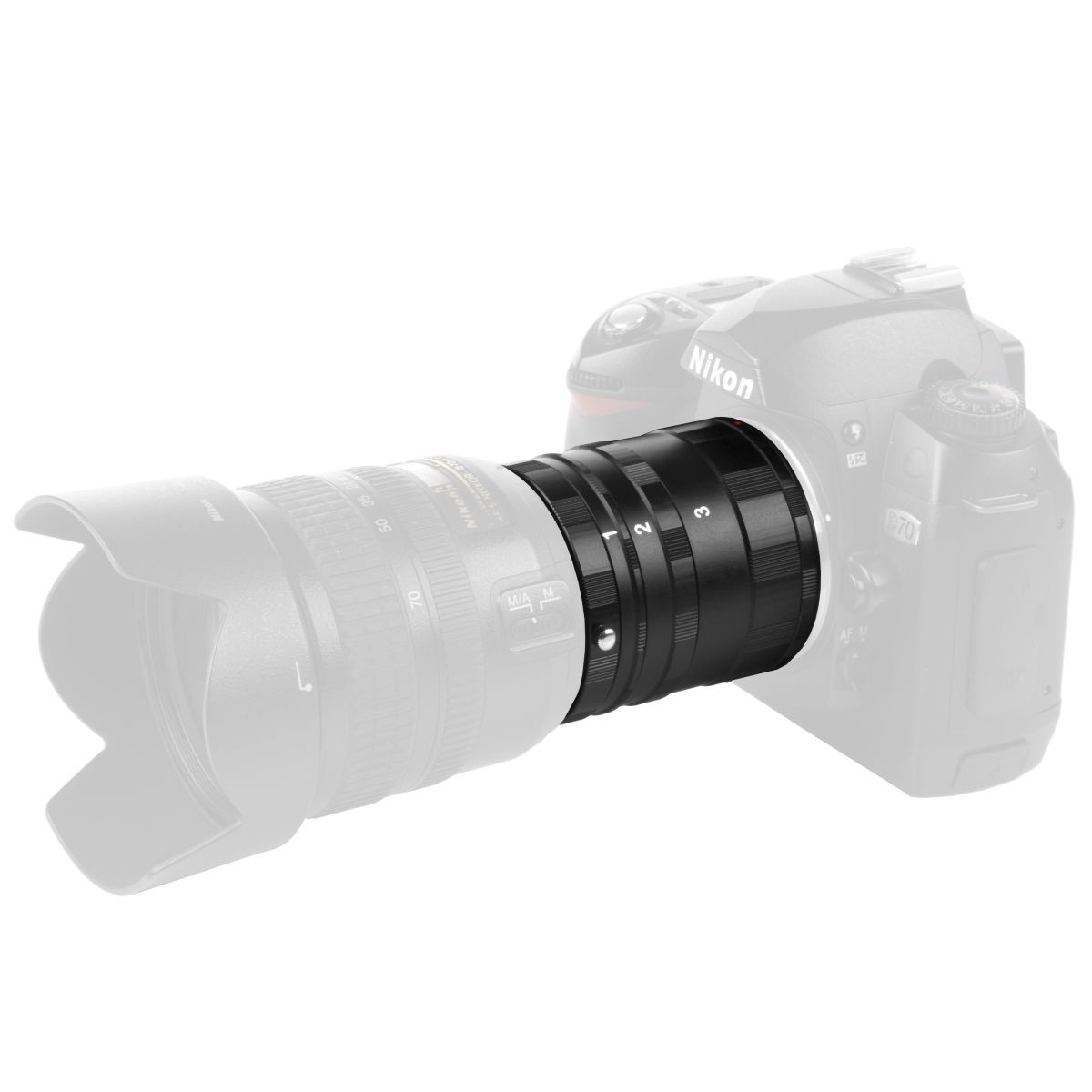 manueller Adapterring für den Einsatz in der Makrofotografie, verkürzt die Naheinstellgrenze des Objektivs und ermöglicht dadurch geringere Aufnahmedistanzen - Set bestehend aus drei Zwischenringen (7mm, 13mm, 37mm) und zwei Bajonettringen - beliebig miteinander kombinierbar für unterschiedliche Abbildungsmaßstäbe - passend für folgende Nikon-Objektive: D7000, D5000, D3100, D3000, D90, D80, D70, D70s, D60, D50, D40, D40x, D700, D300, D300S, D200, D100, D3x, D3, D2Xs, D2Hs, D2