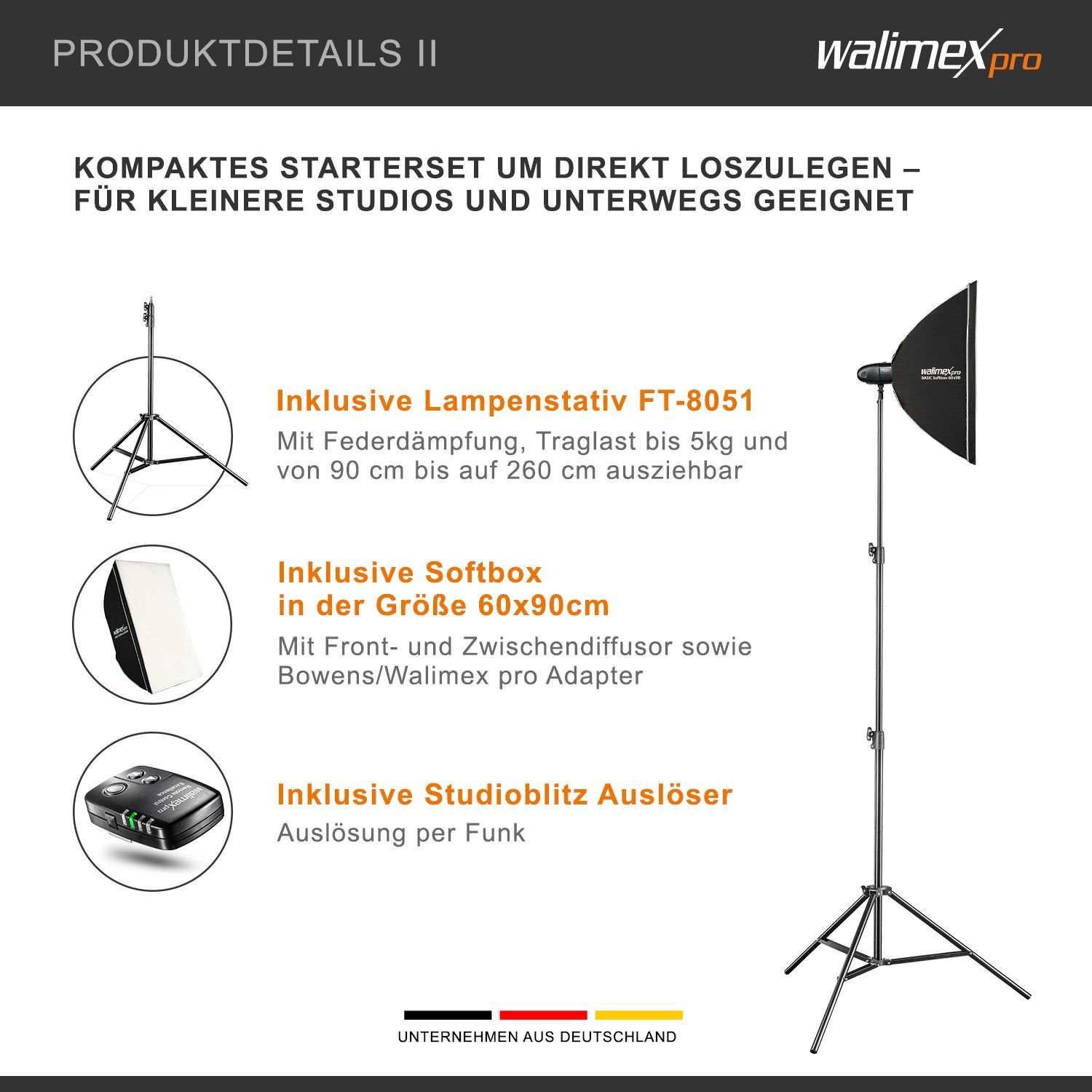 Walimex pro 2x Newcomer 300W II Studioblitz Softbox Lampenstativ LED Studiolicht