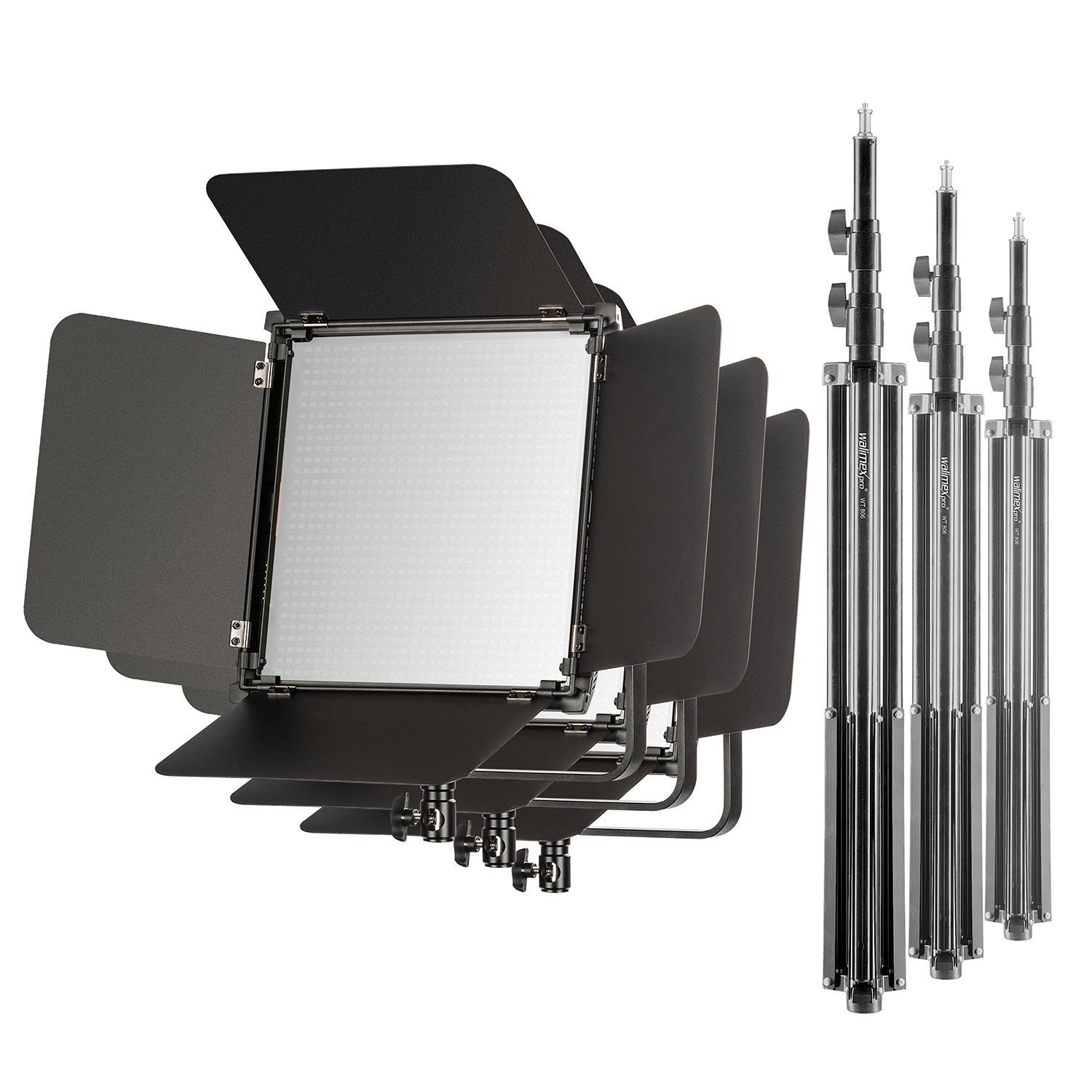 Walimex pro 3x LED Niova 100-F Pro 100W Bi-Color Flächenleuchte 3x Lampenstativ