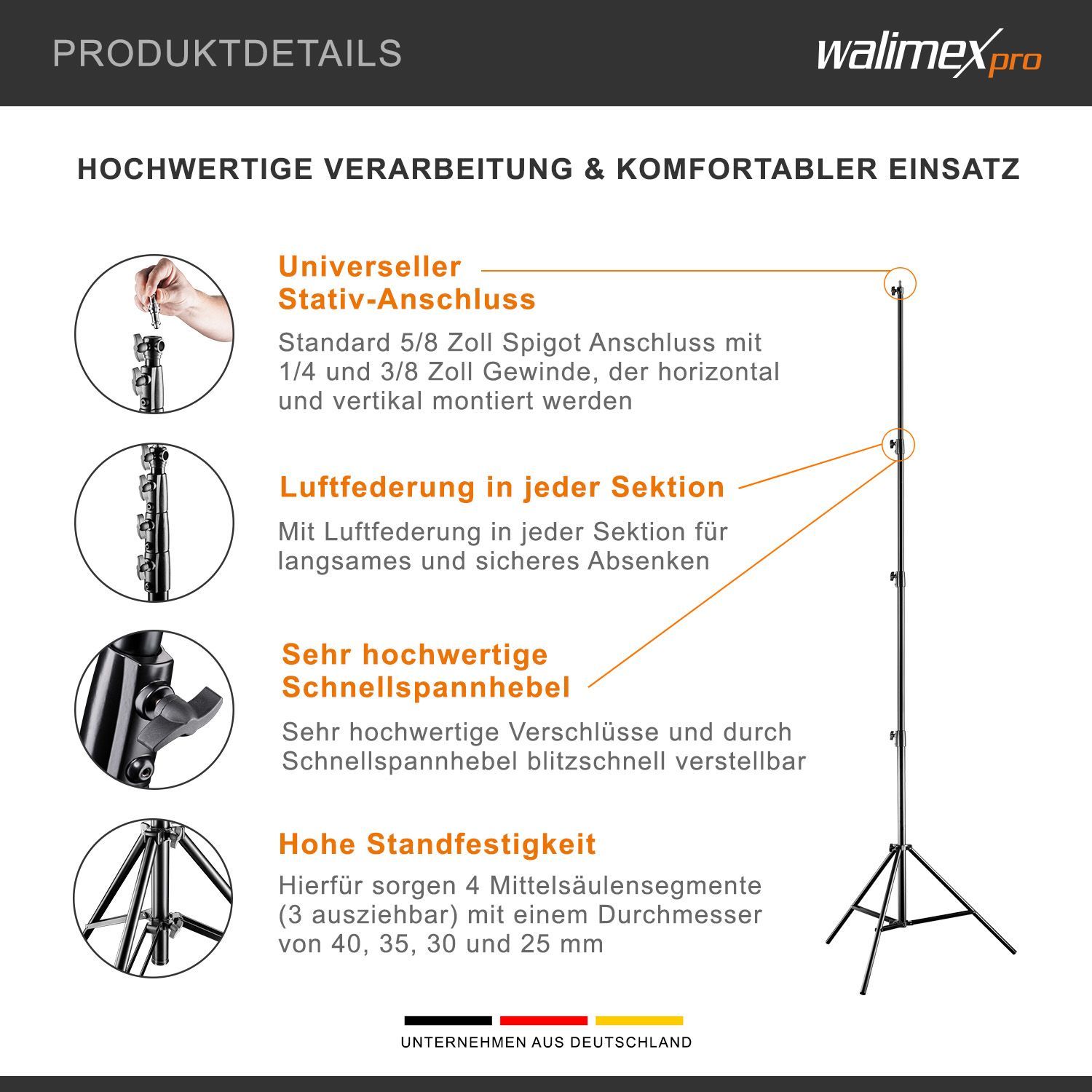 Walimex pro AIR 380 Deluxe Lampenstativ 380cm Lichtstativ Blitzstativ Fotostudio