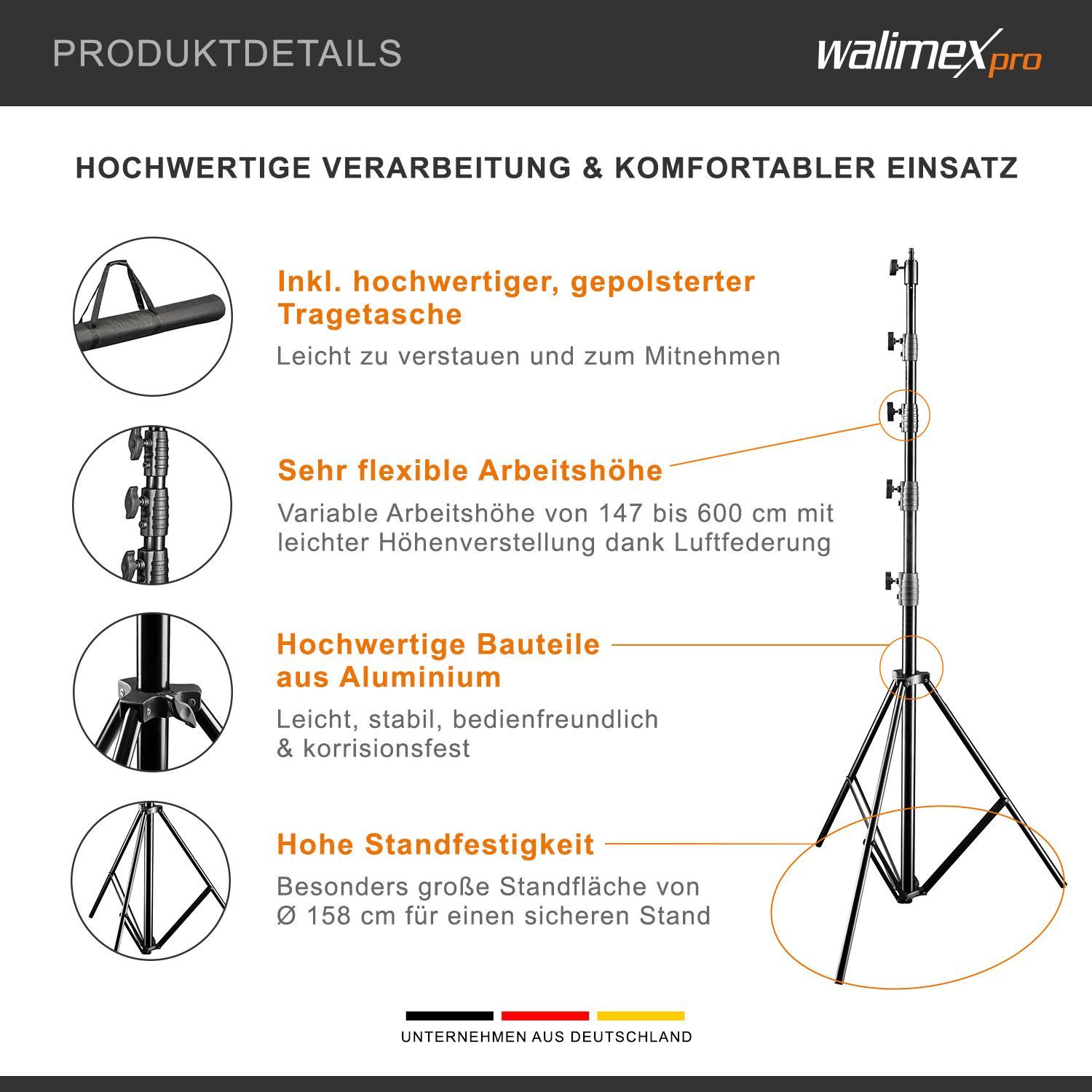 Walimex pro AIR Jumbo 600 Lampenstativ 600cm Lichtstativ Blitzstativ Tripod Foto