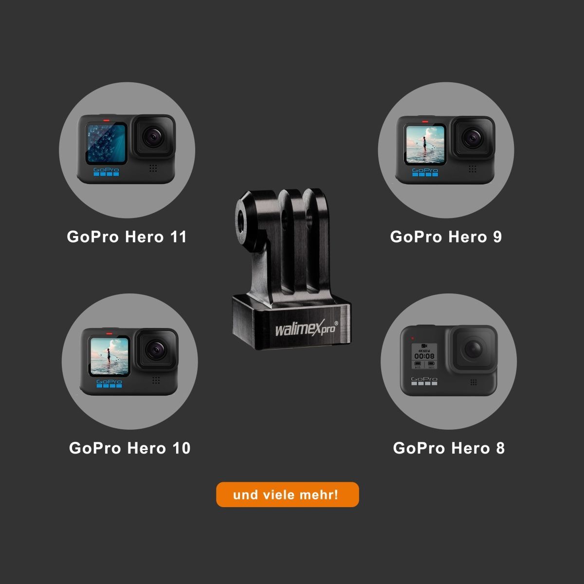 Walimex pro Alu Stativ Adapter 23x25x38mm 1/4" Mount für GoPro Hero Action Cam