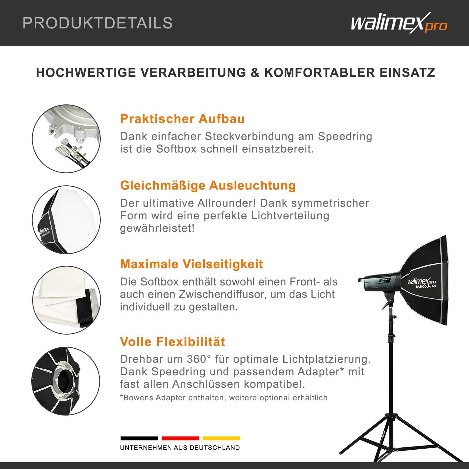 Walimex pro Basic Softbox Octagon 60cm 360° Diffusoren Tasche Bowens Studio Foto