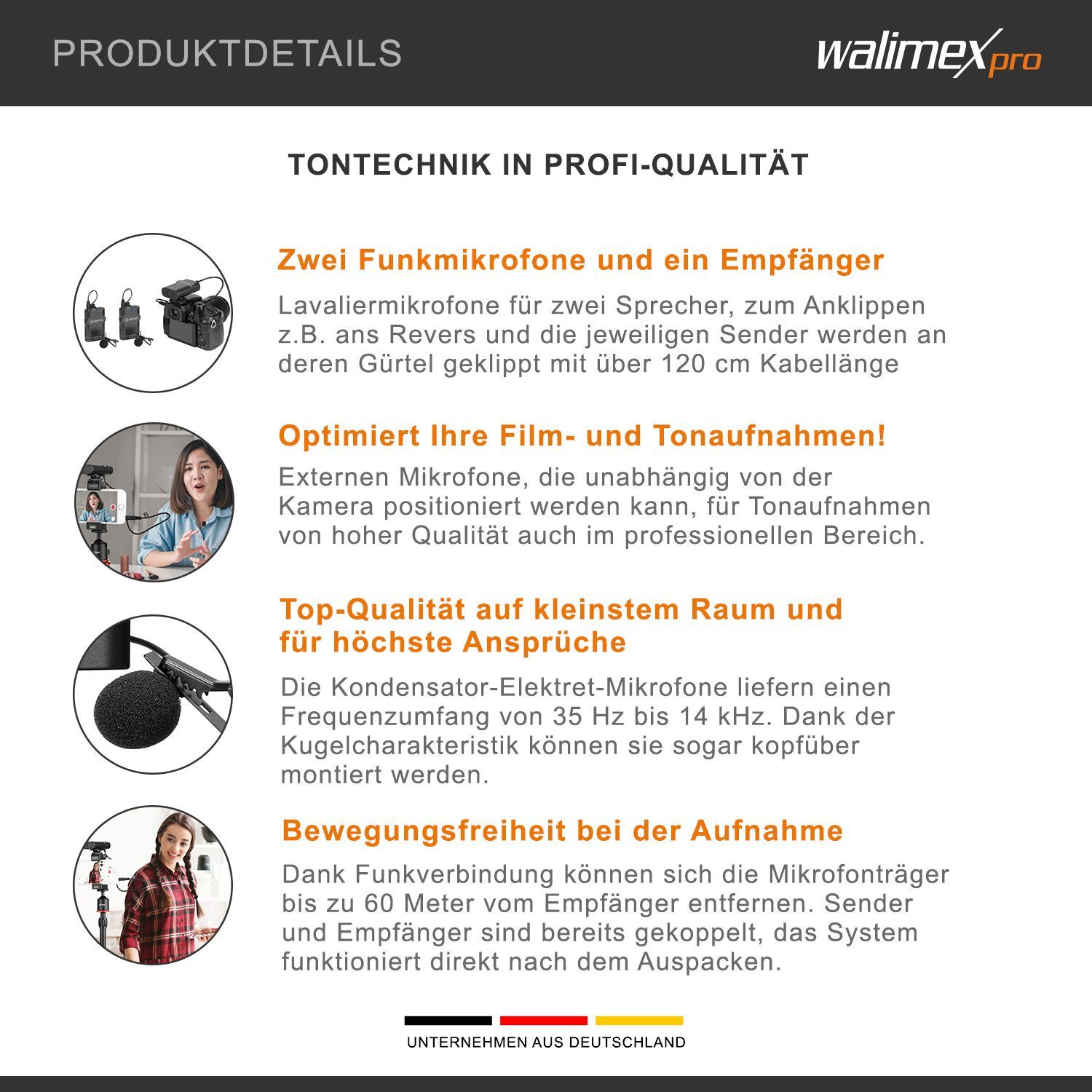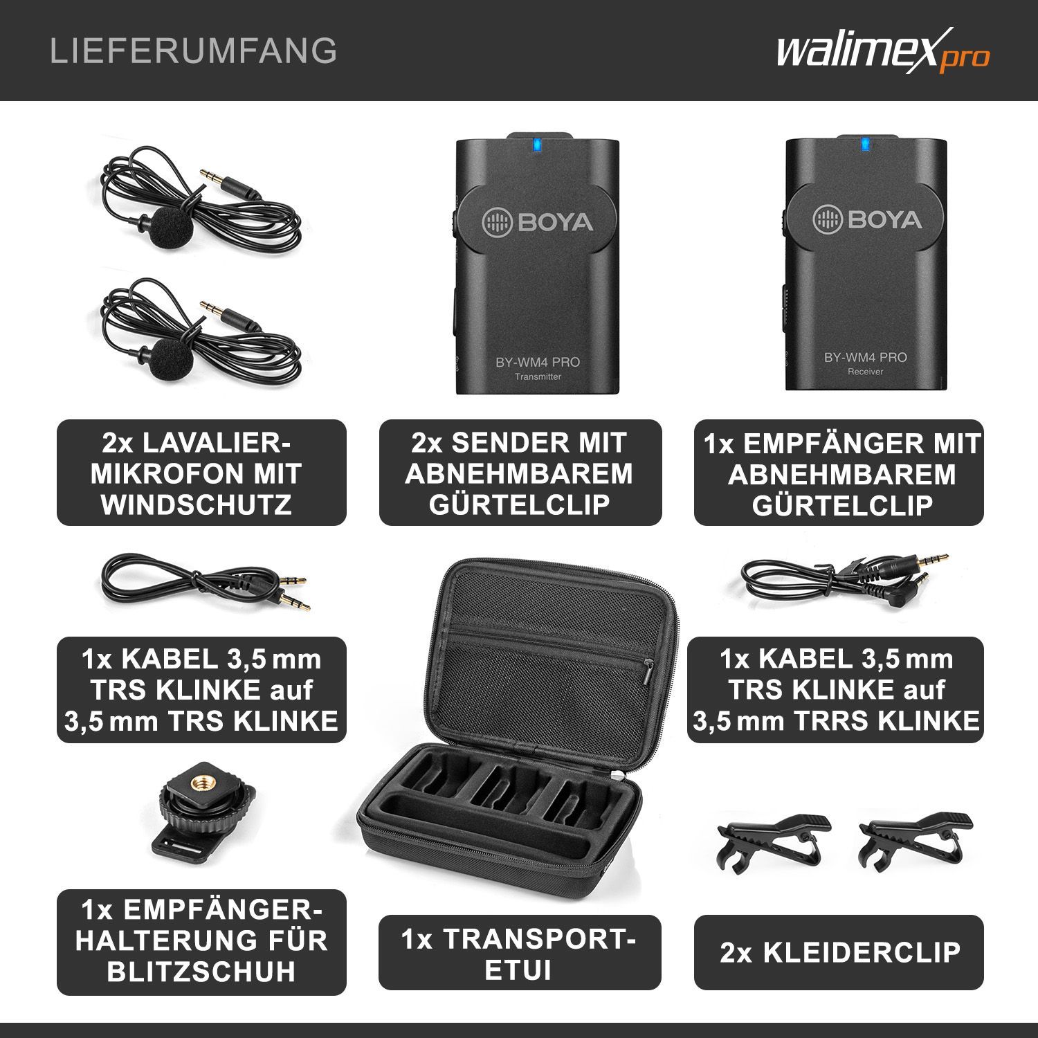 Walimex pro Boya 3er Set WM4 Pro K-2 Lavalier Mikrofon 60m 2xSender 1xEmpfänger