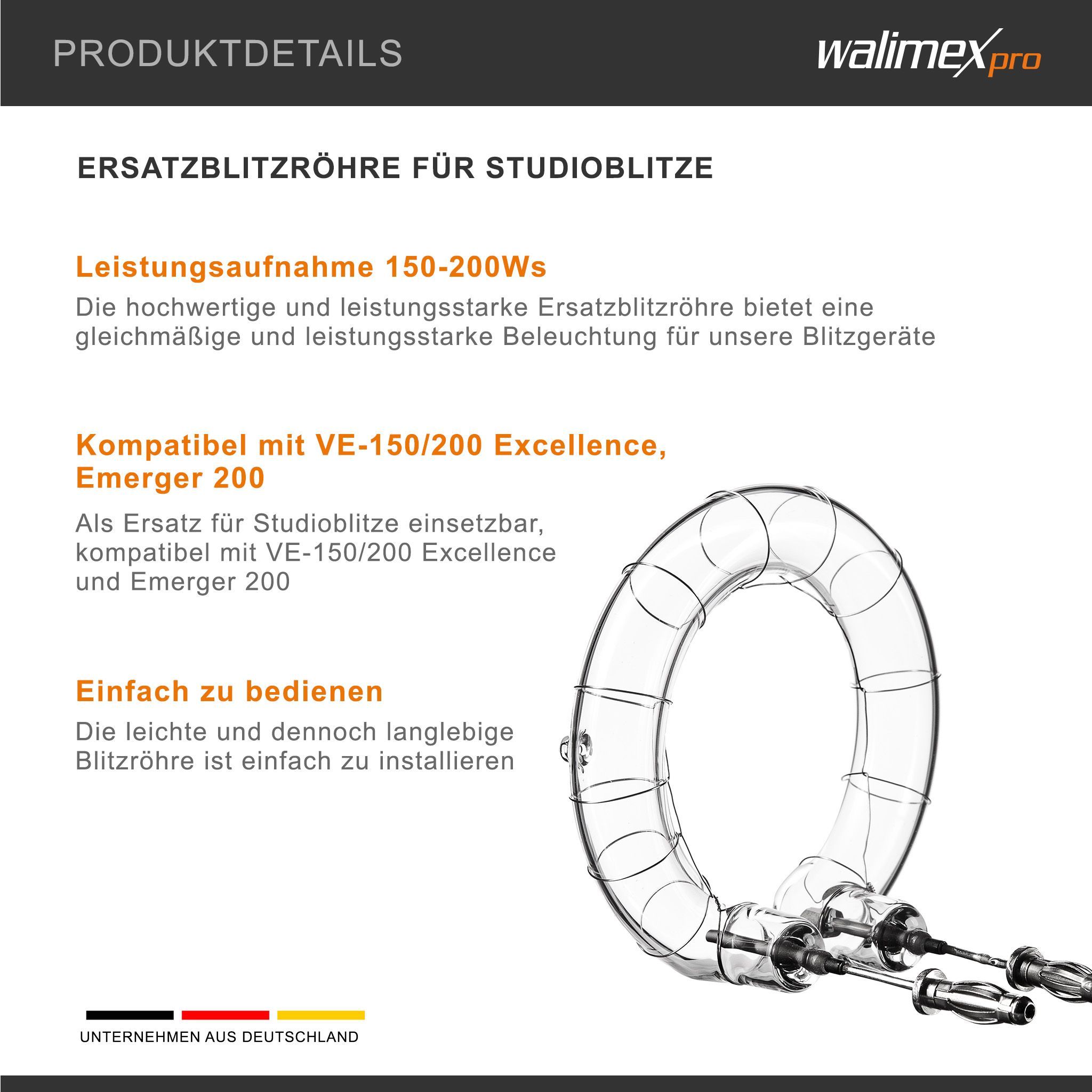 Walimex pro Ersatzblitzröhre Emerger 200 VE-150/200 150-200W 5400-5800K Studio