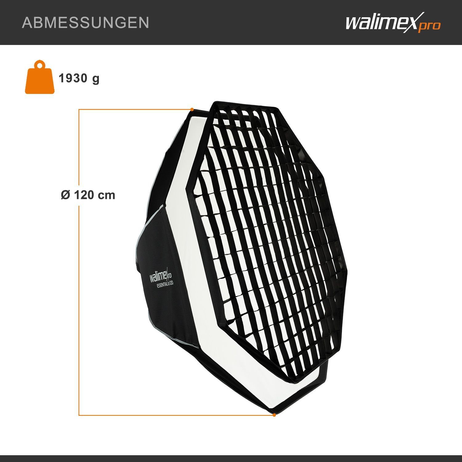 Walimex pro Essential Softbox Octagon 120cm 360° einfacher Aufbau Grid Elinchrom