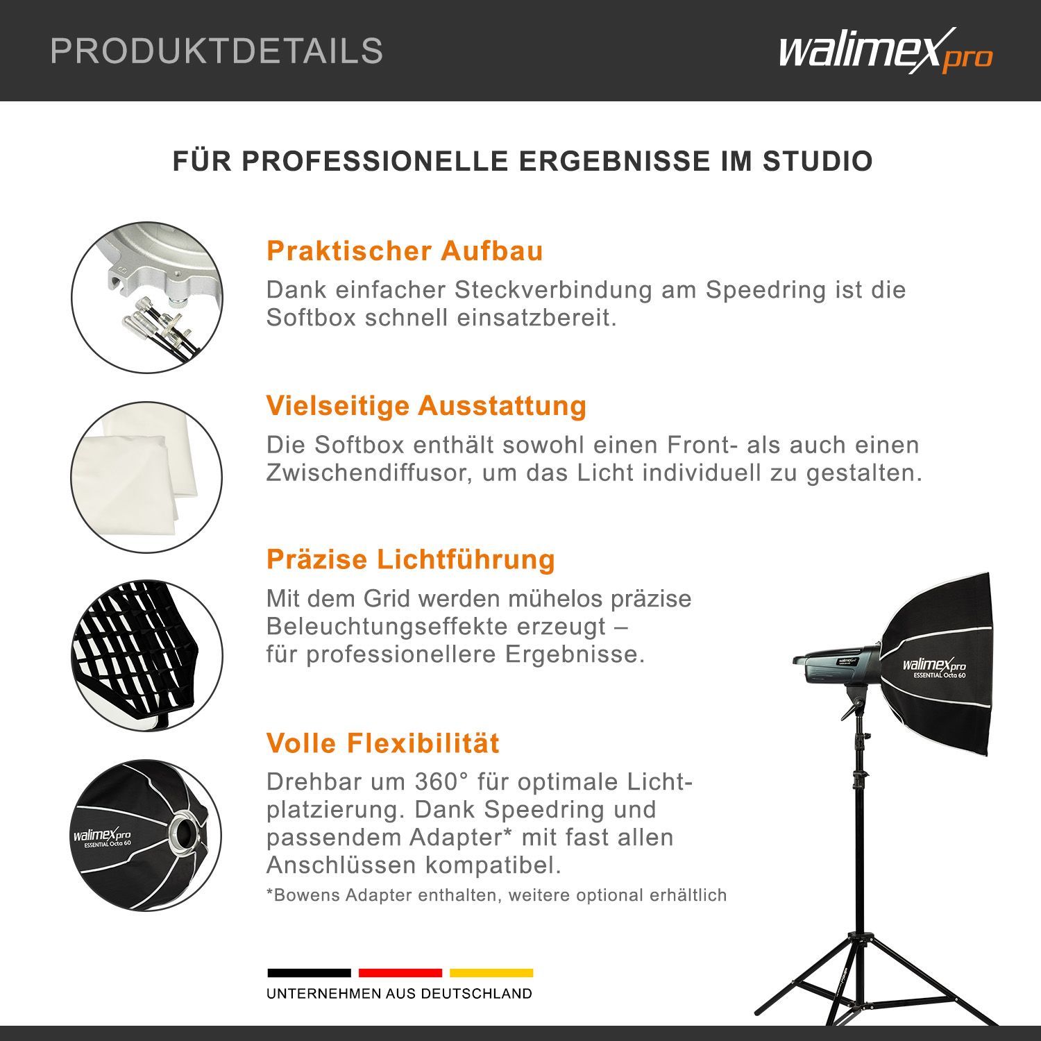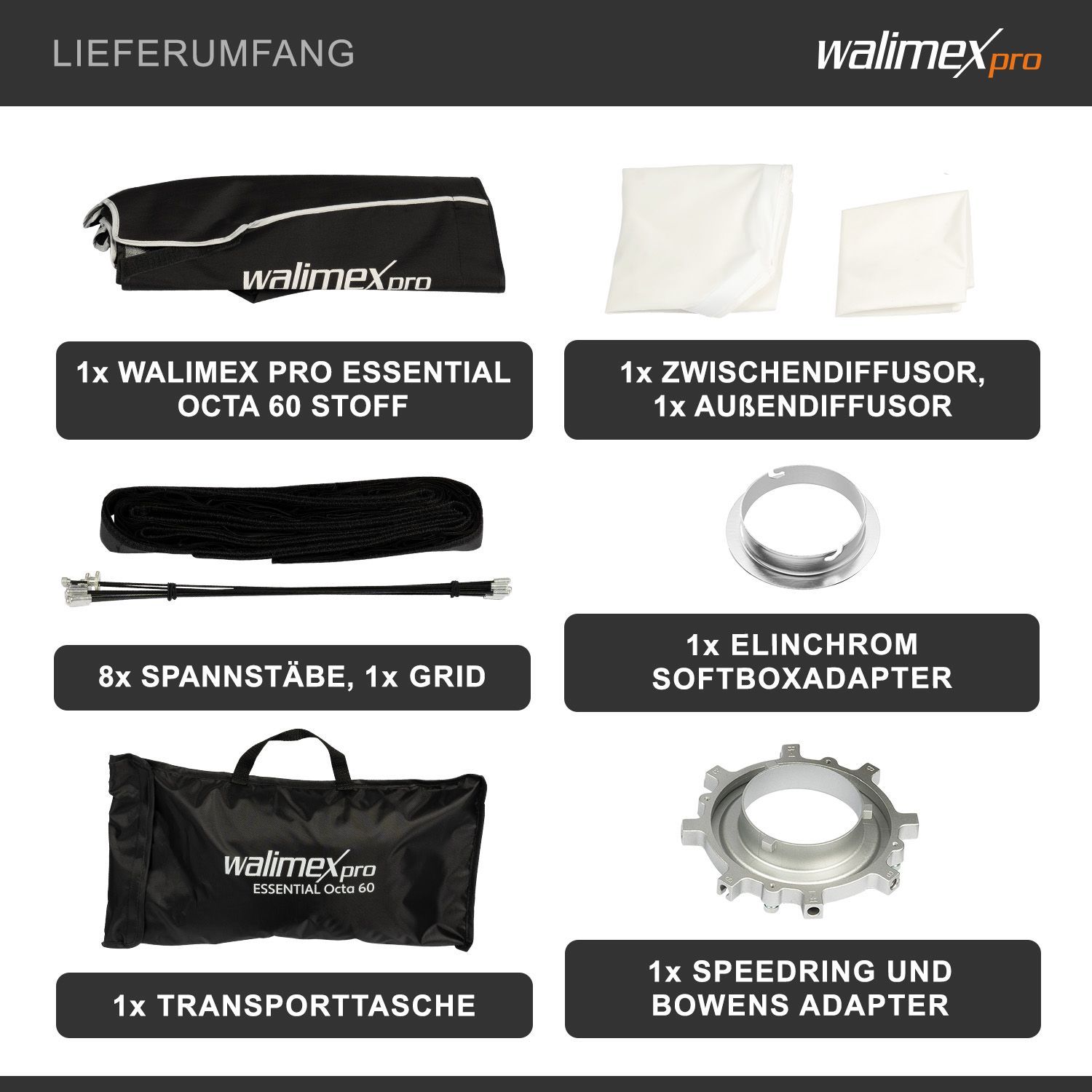 Walimex pro Essential Softbox Octagon 60cm 360° einfacher Aufbau Grid Elinchrom