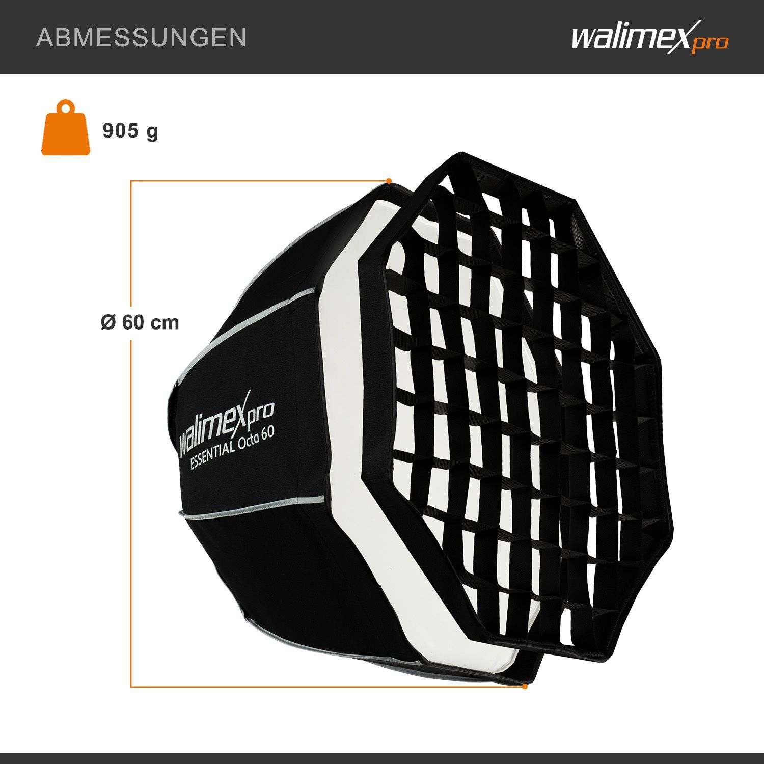 Walimex pro Essential Softbox Octagon 60cm 360° einfacher Aufbau Grid Hensel EH