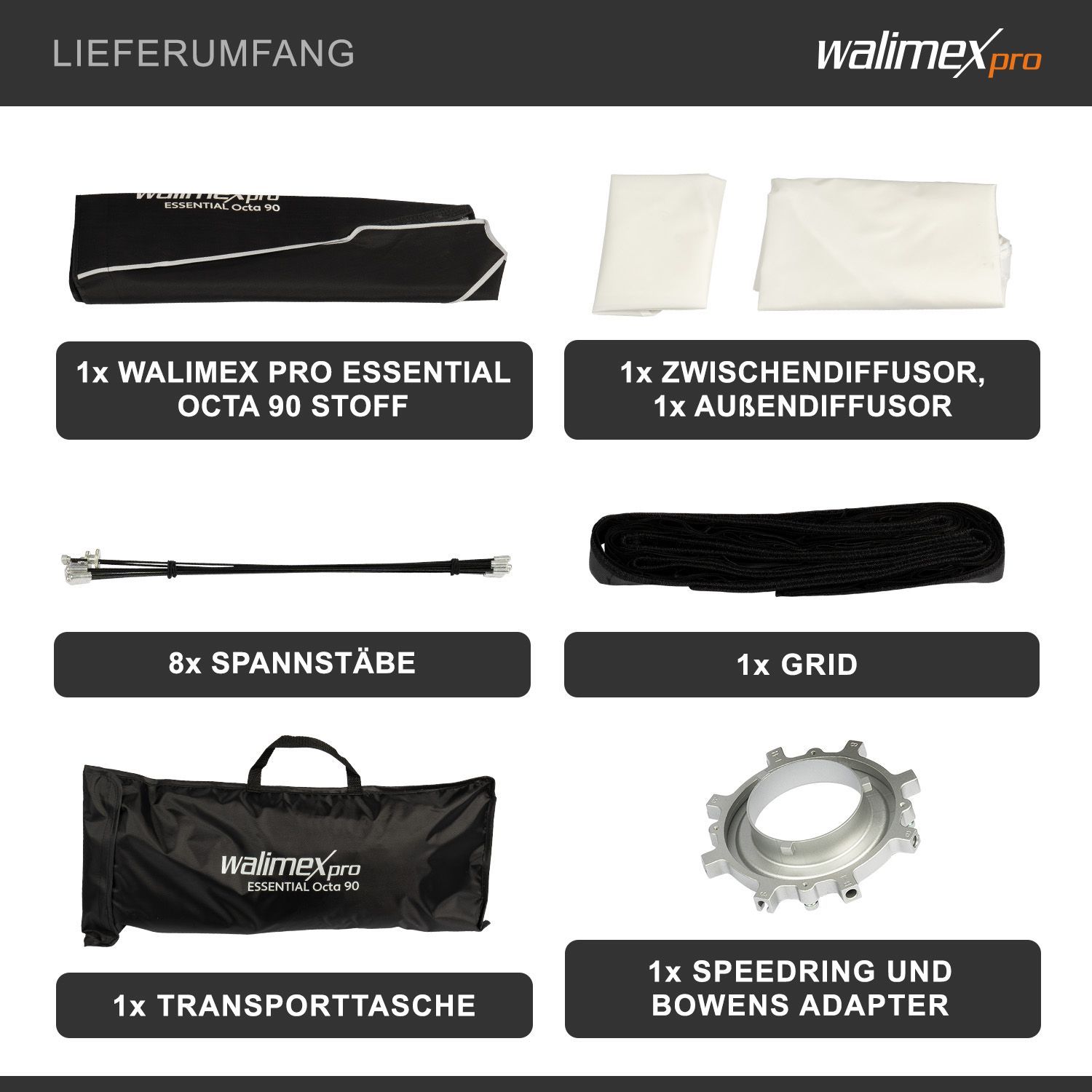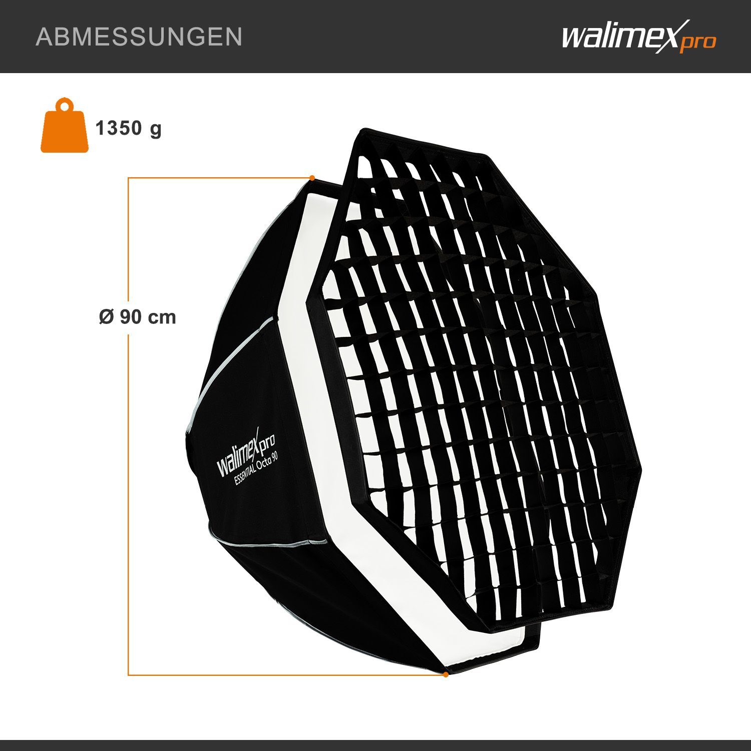 Walimex pro Essential Softbox Octagon 90cm 360° einfacher Aufbau Grid Bowens