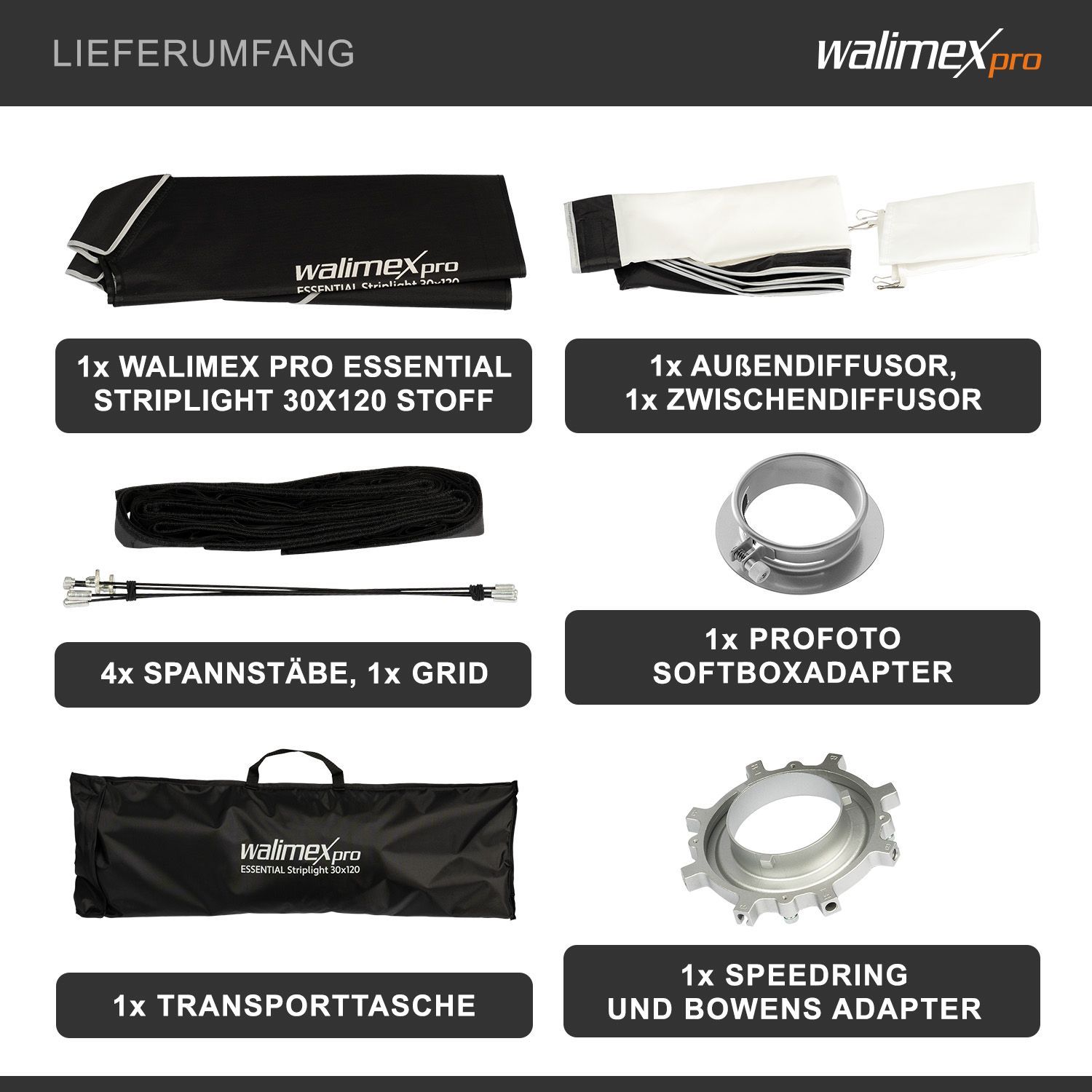 Walimex pro Essential Striplight Softbox 30x120cm Lichtformer 360° Profoto