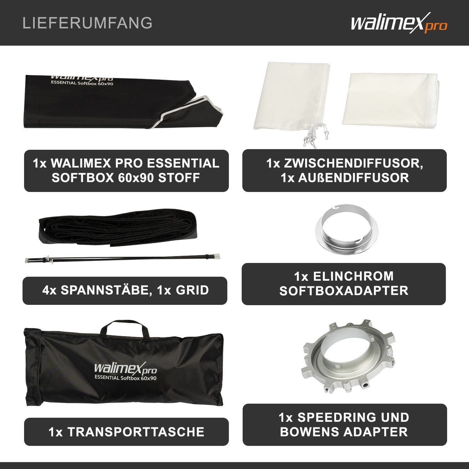 Walimex pro Essential Striplight Softbox 60x90cm Lichtformer 360° Elinchrom