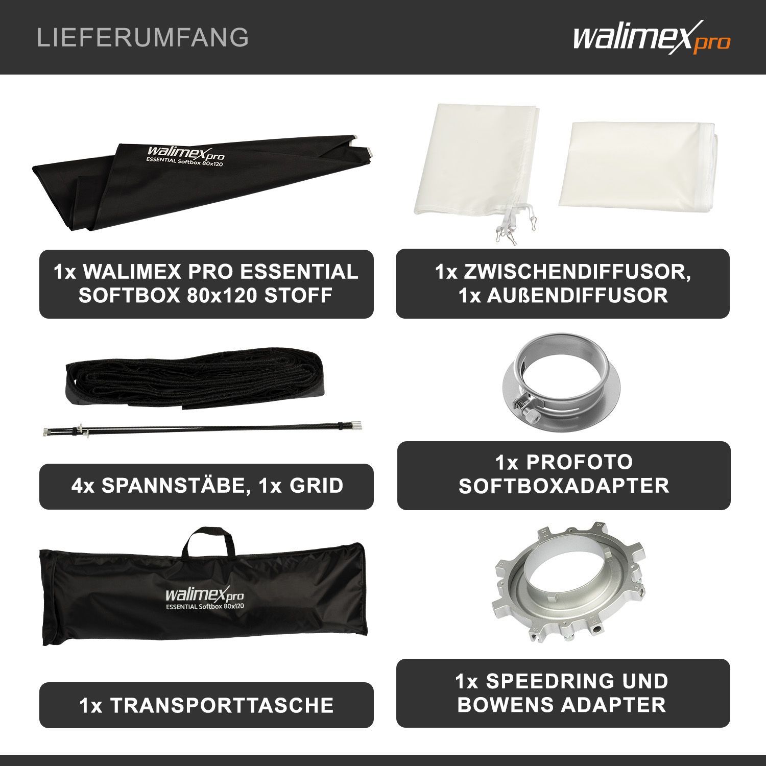 Walimex pro Essential Striplight Softbox 80x120cm Lichtformer 360° Profoto