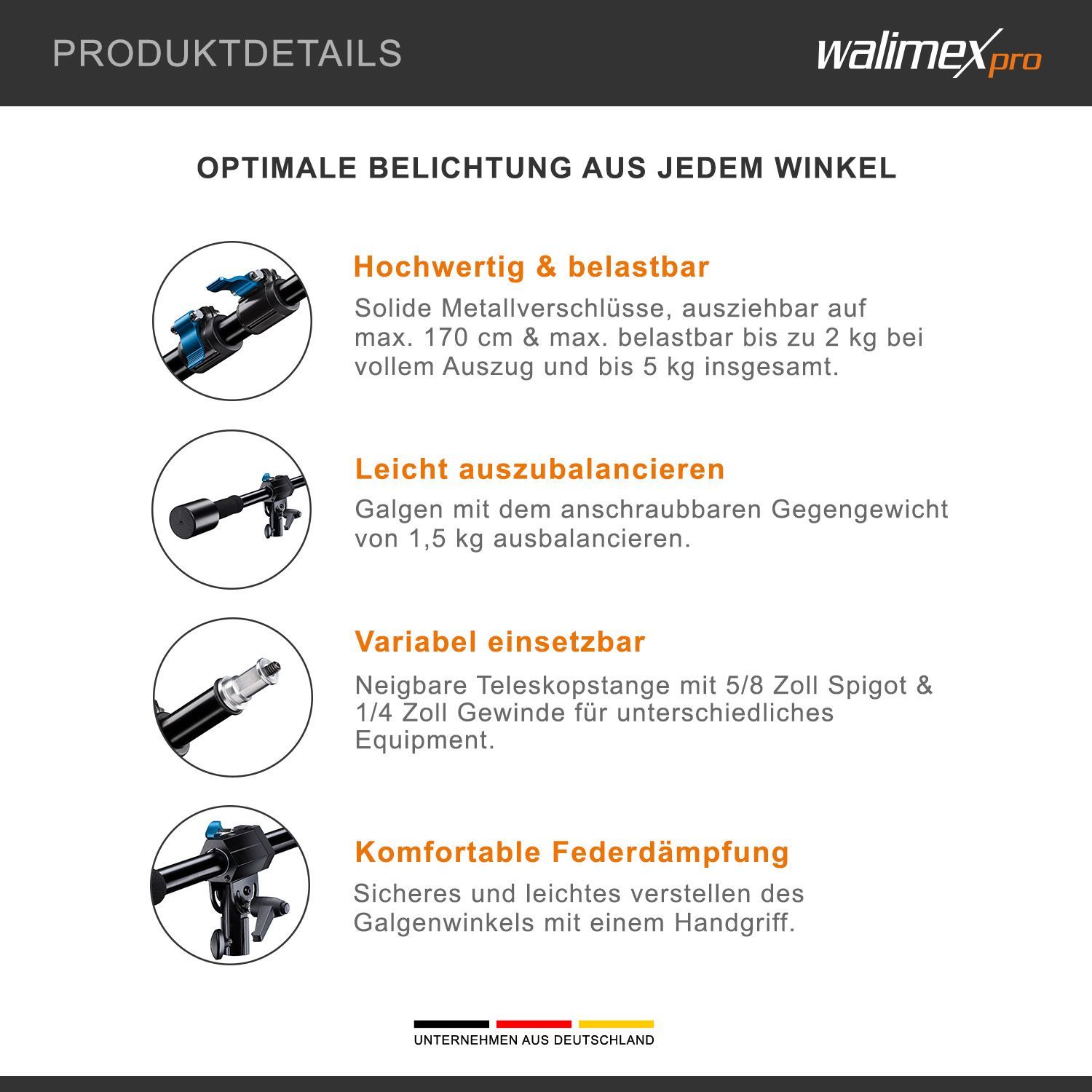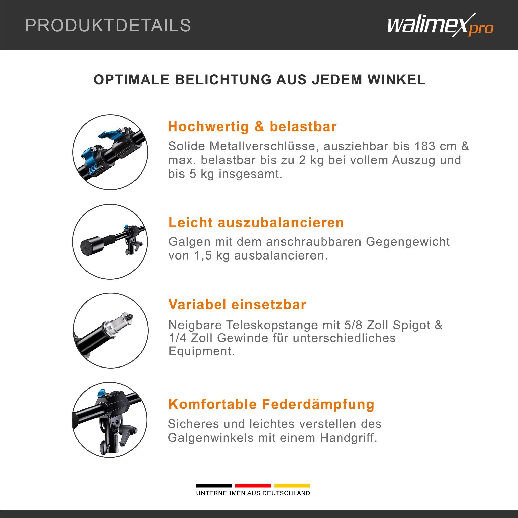 Walimex pro Galgen mit Gegengewicht 70-183cm Boom Arm Galgenstativ Lampenstativ