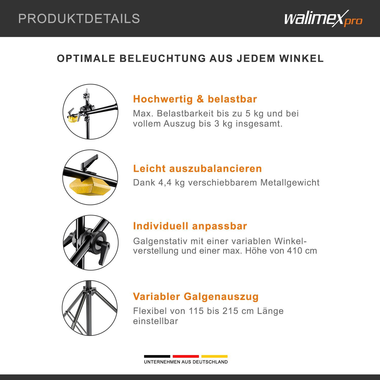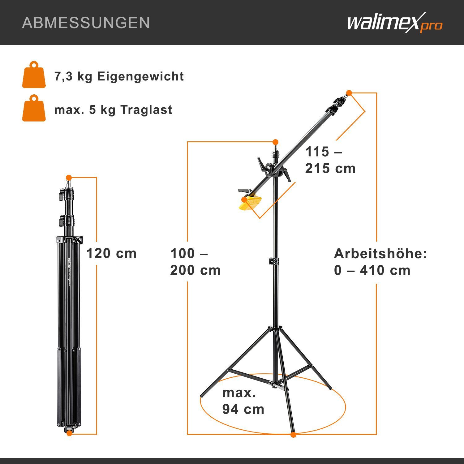 Walimex pro Galgenstativ WT-501 100-410cm Lichtstativ Lampenstativ Dreibein