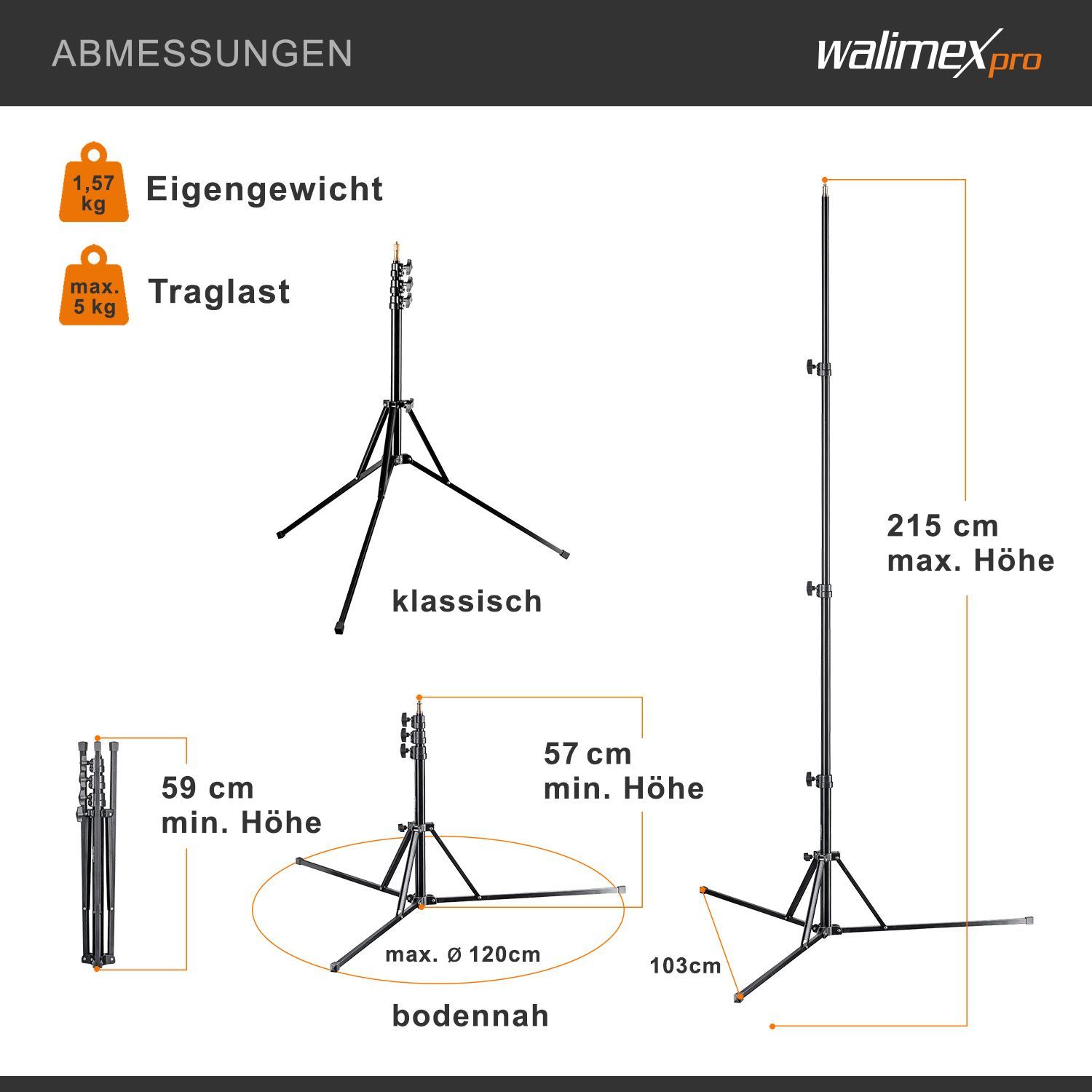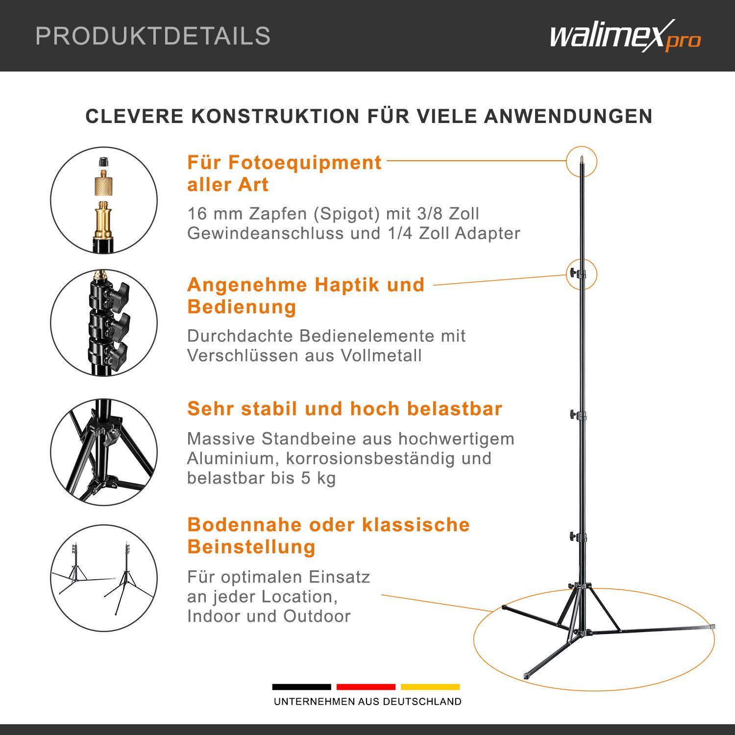 Walimex pro GN-806 Lampenstativ 215cm Lichtstativ Blitzstativ Studiostativ Foto
