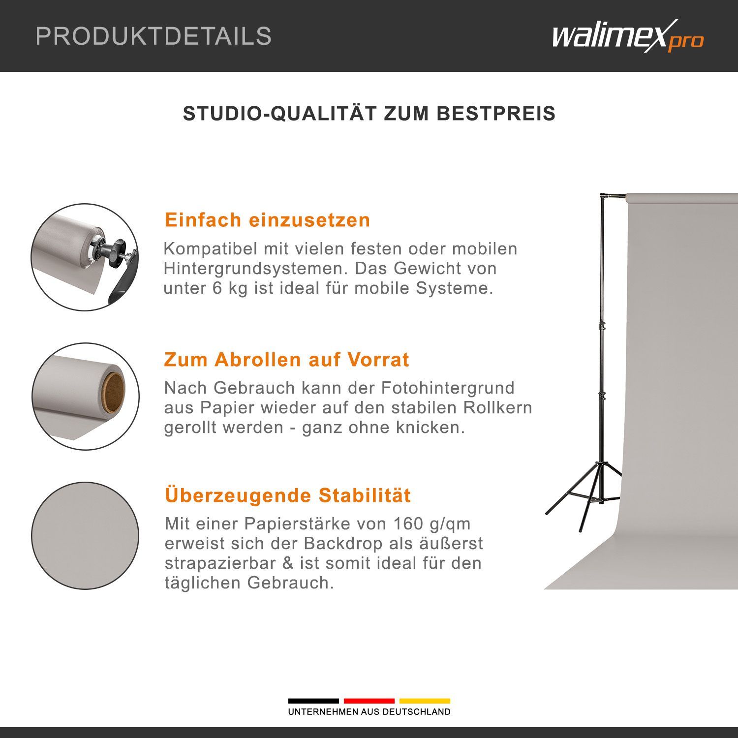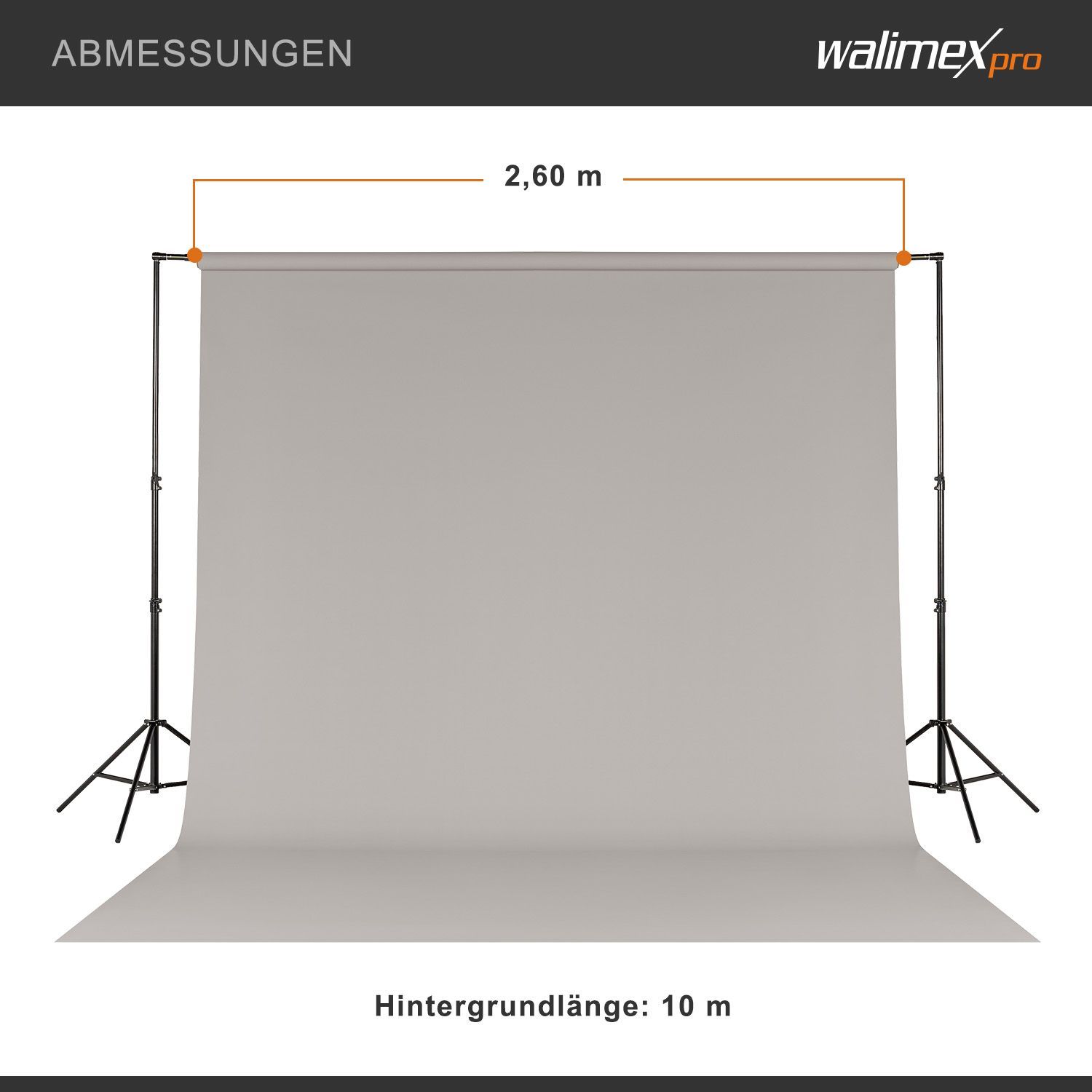 Walimex pro Hintergrundkarton 2,60x10m light grey Fotohintergrund Backdrop Fotostudi