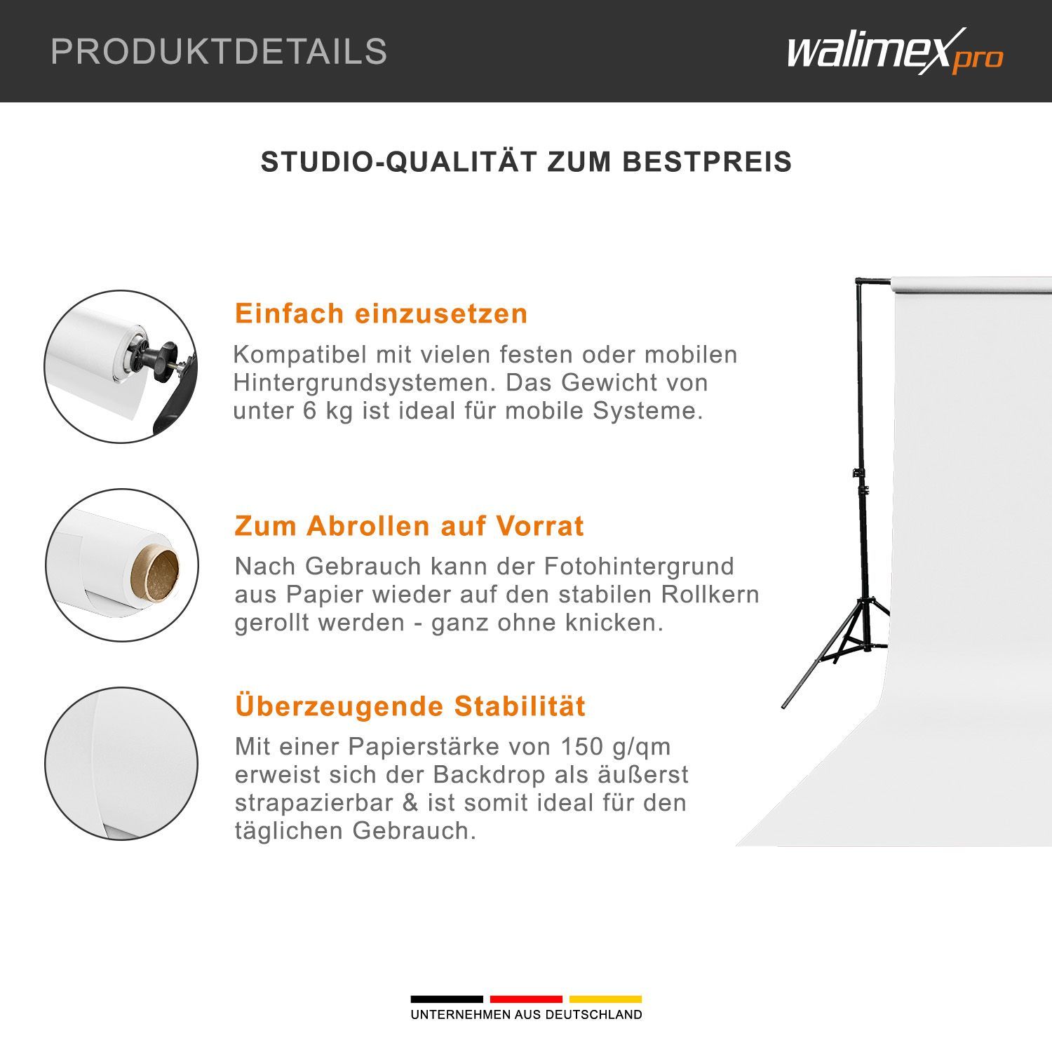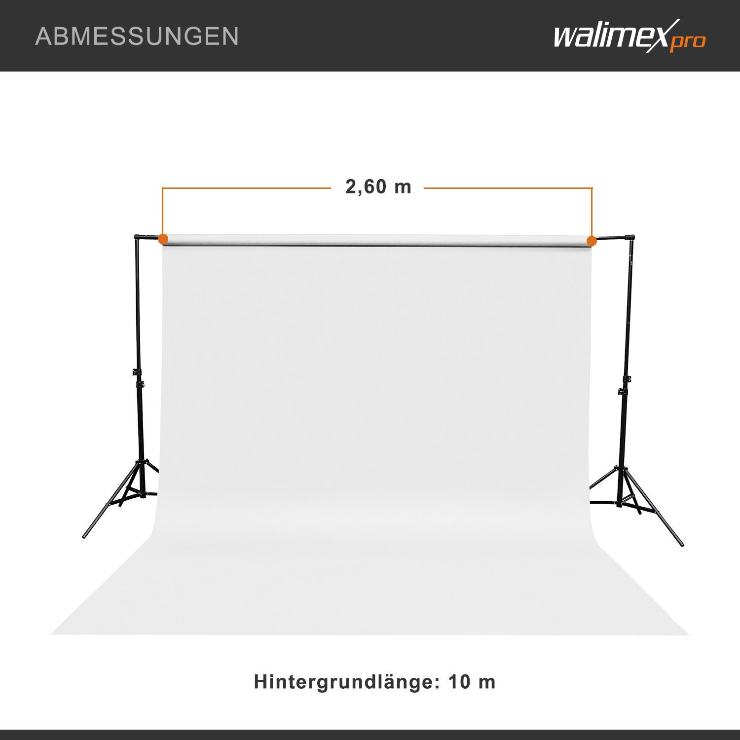 Walimex pro Hintergrundkarton 2,60x10m weiß Fotohintergrund Backdrop Fotostudio