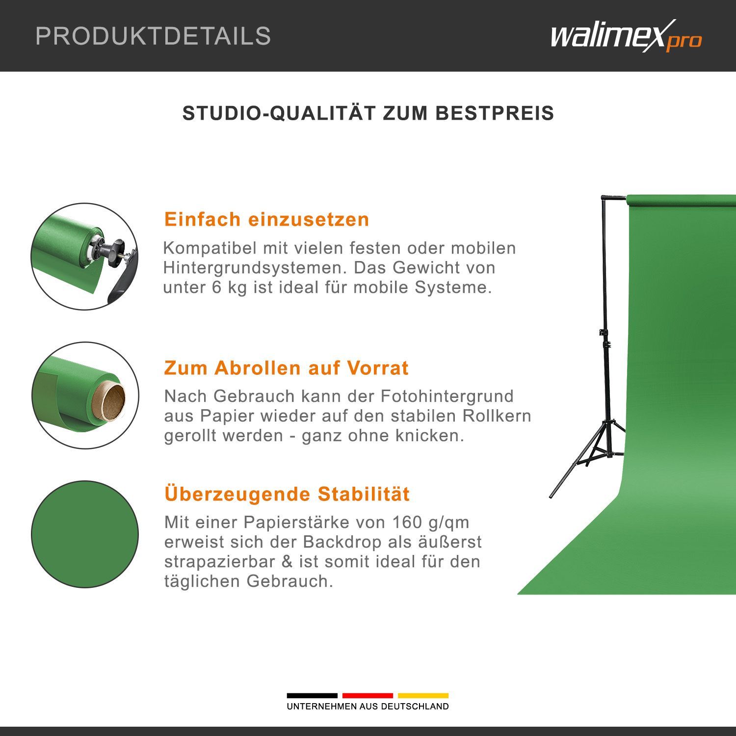 Walimex pro Hintergrundkarton 2,72x10m grün chroma Leinwand Backdrop Fotostudio