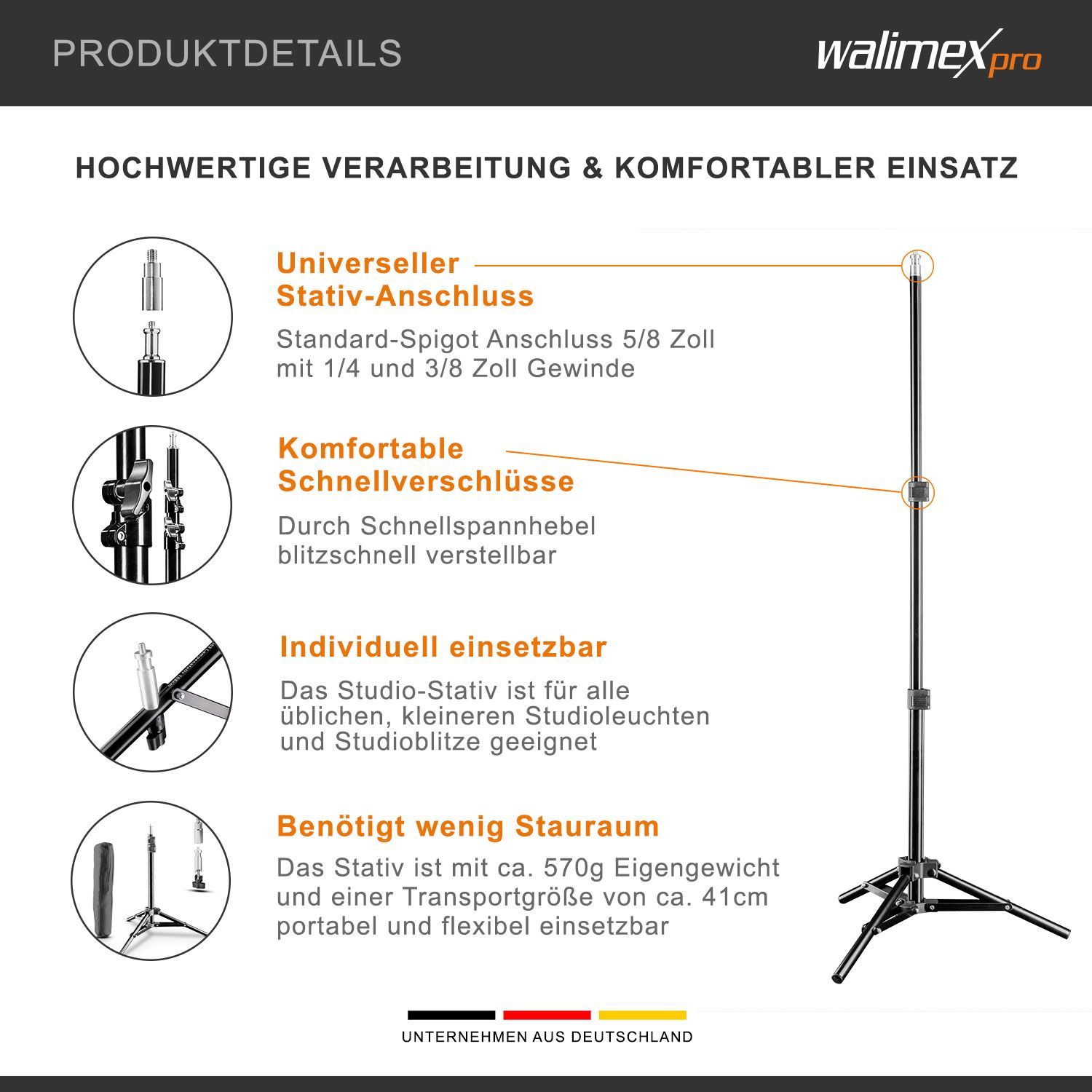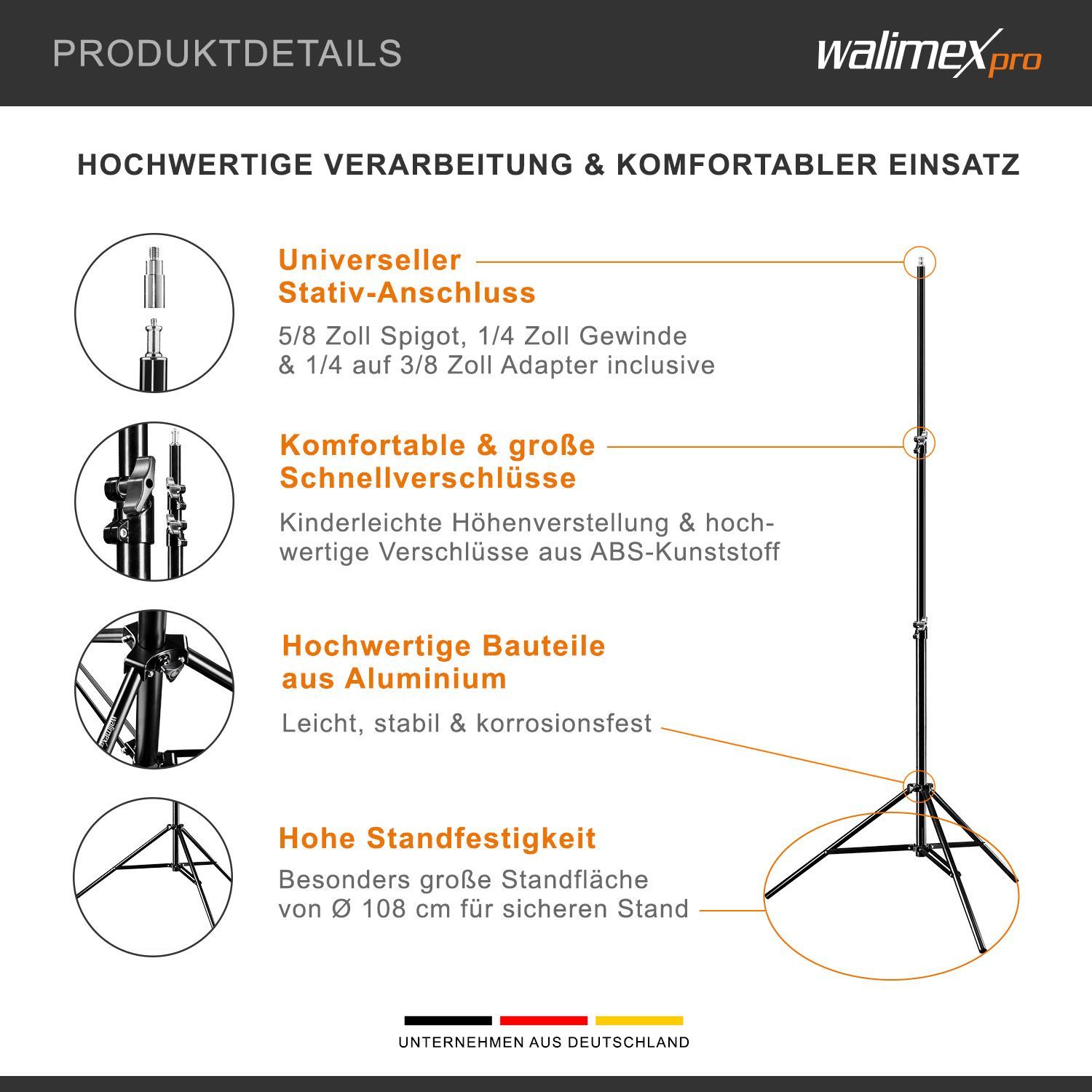 Walimex pro Lampenstativ Set mit Tasche 4tlg. Lichtstativ Blitzstativ Fotografie